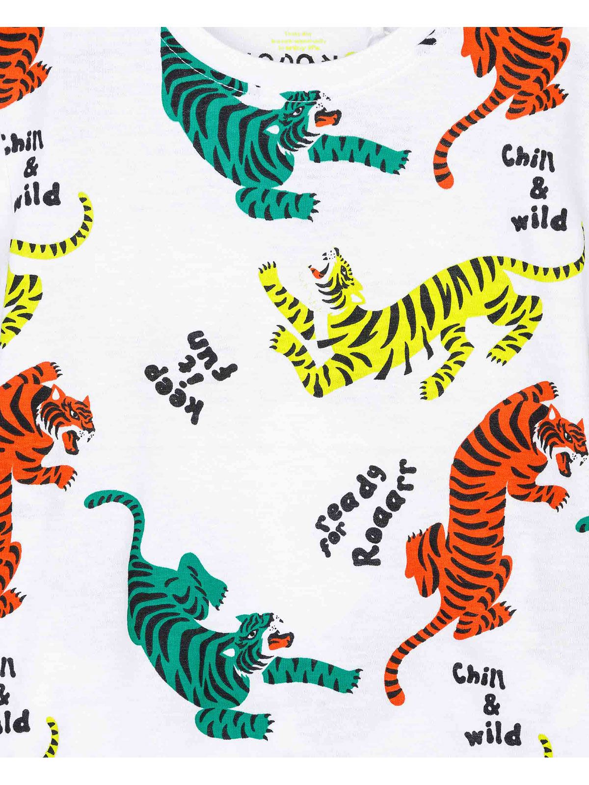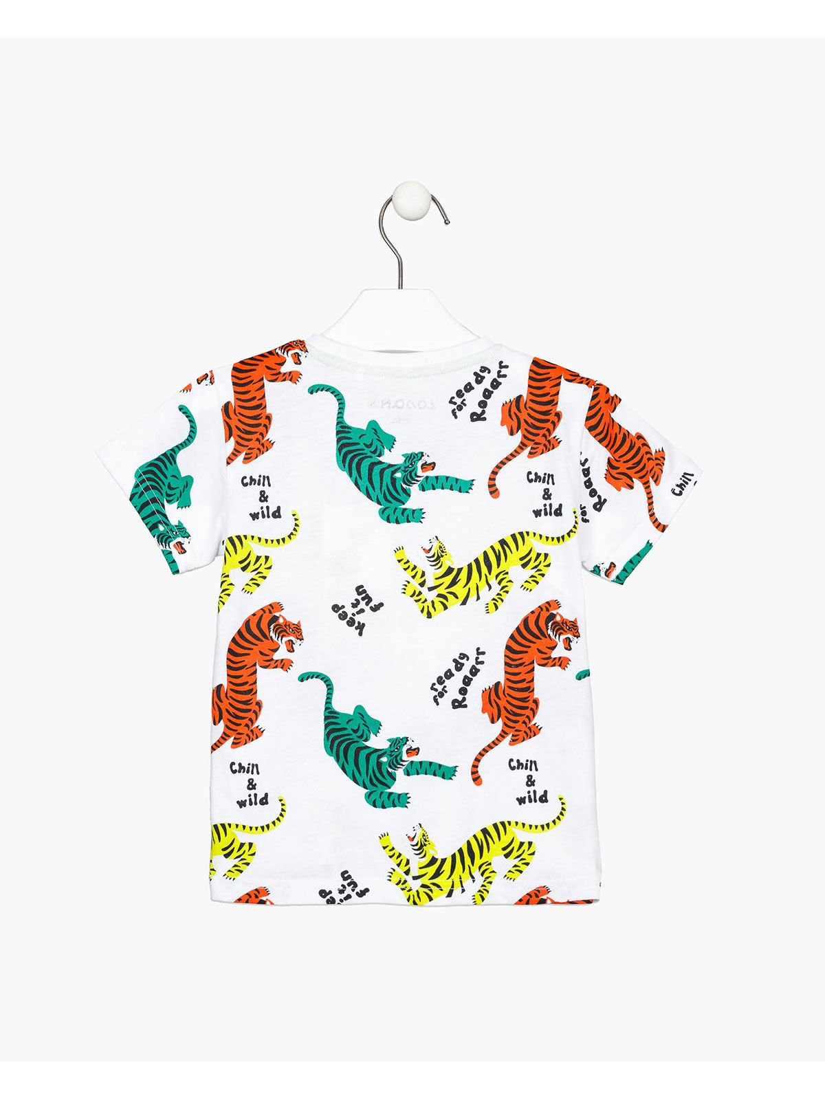 Μπλούζα κοντομάνικι με print πολύχρωμοι τίγρεις λευκό