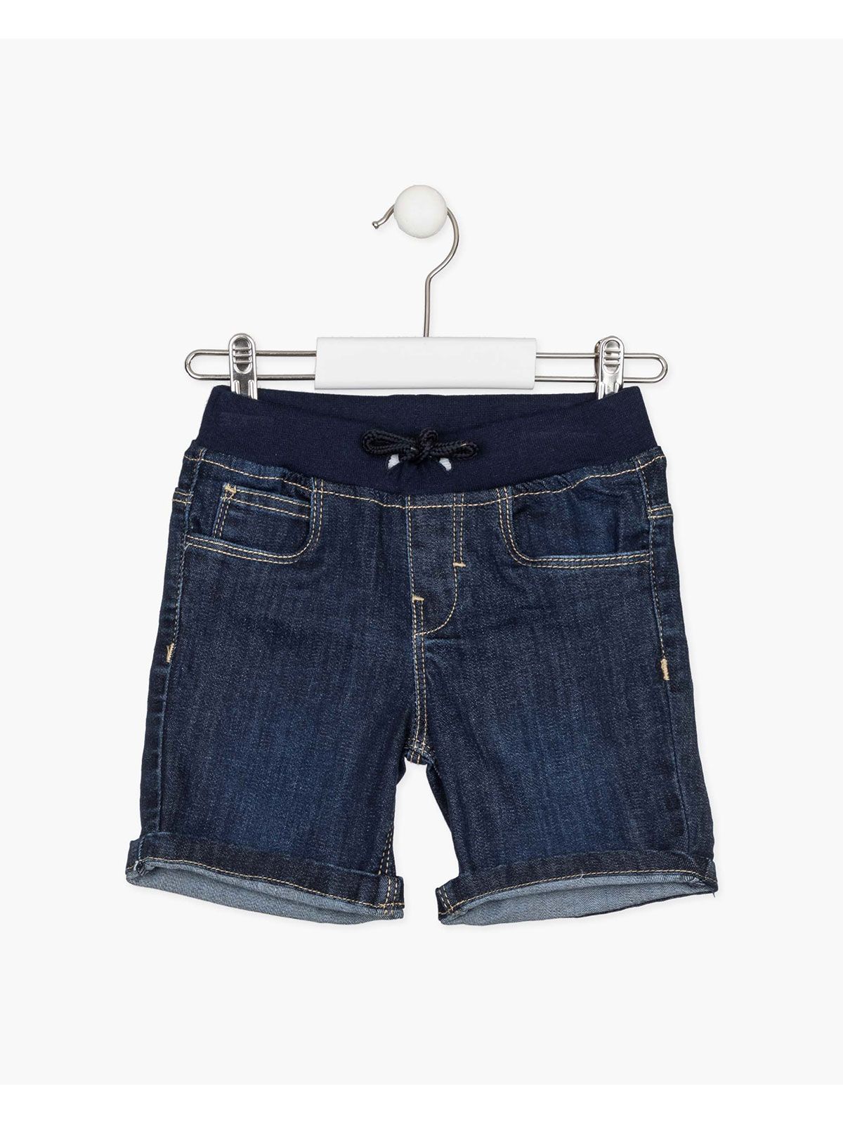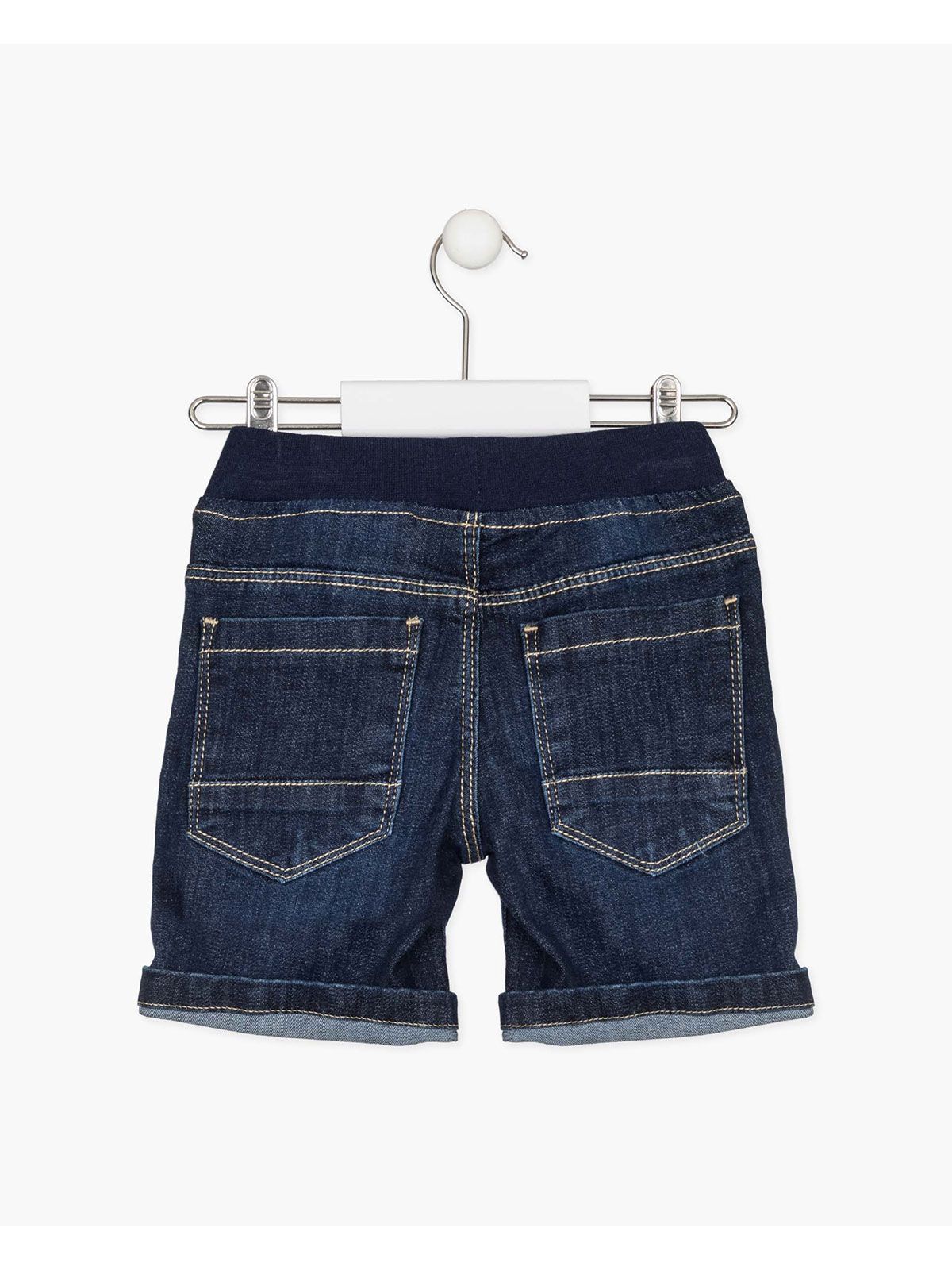 Βερμούδα τζιν με λάστιχο στη μέση, τσέπες και ρεβέρ μπλε