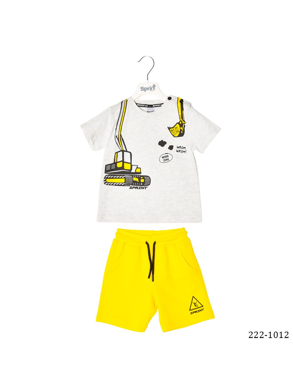 Σετ για αγόρι με print μπουλντόζα ελληνικής ραφής κίτρινο