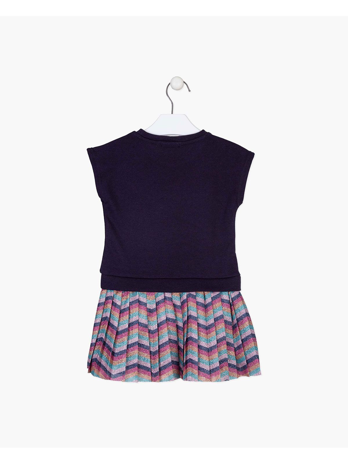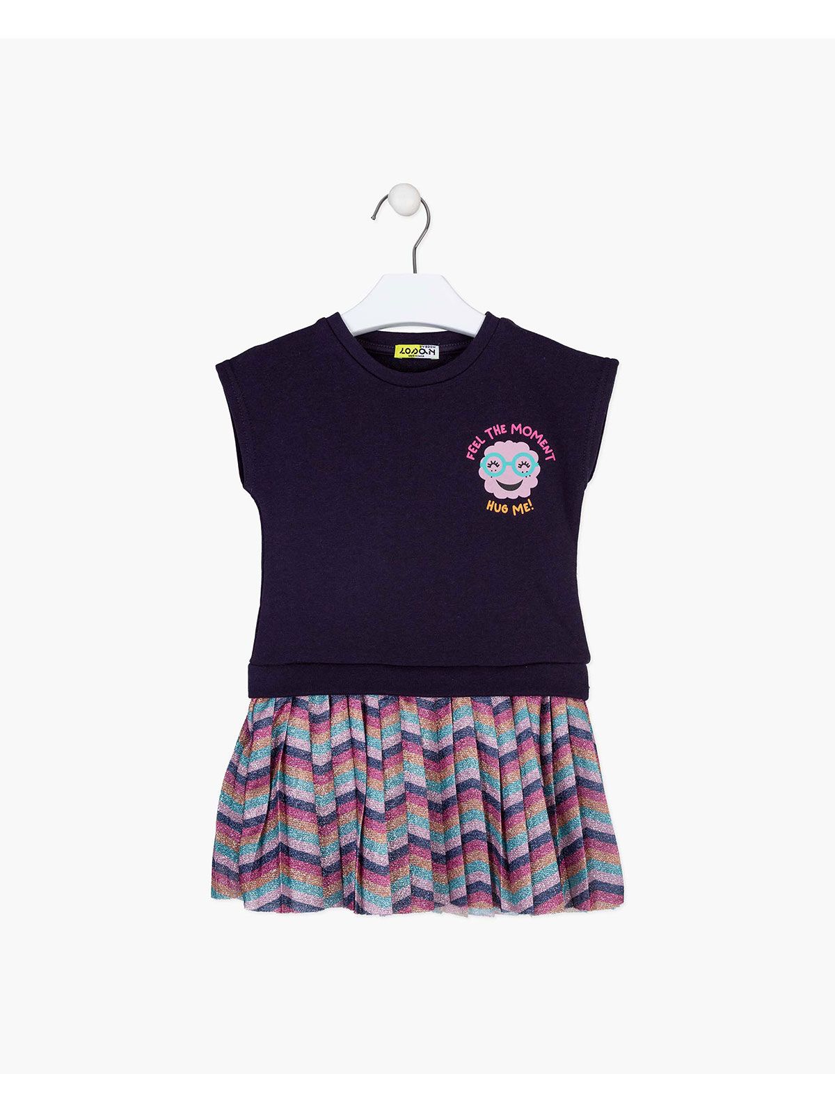 Φόρεμα με γκλίτερ φούστα και print hug me μπλε