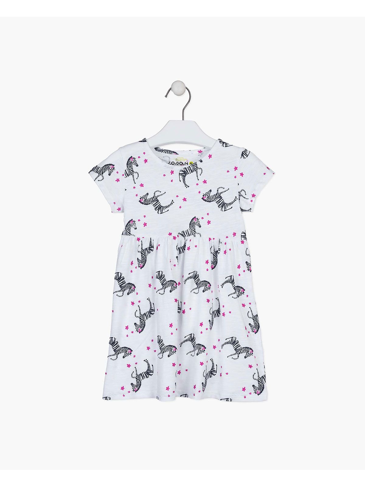 Φόρεμα εμπριμέ με print ζέβρα λευκό