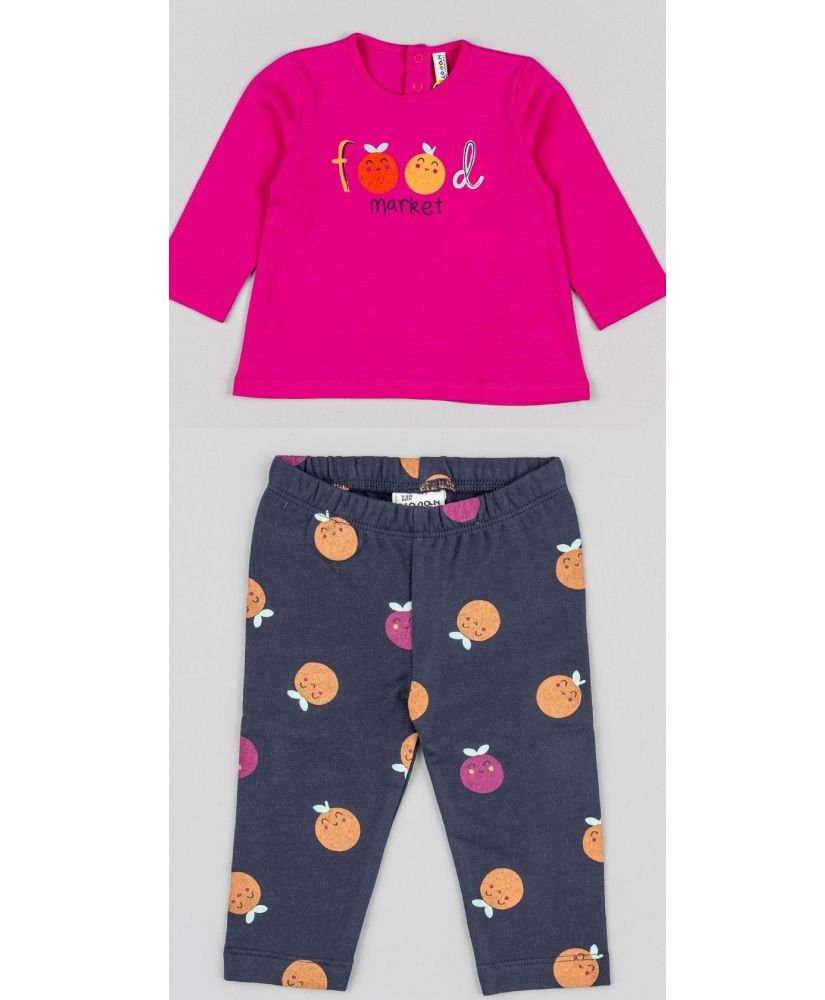 Σετ βρεφικό με print food market και κολάν με ζεστή επένδυση φούξια