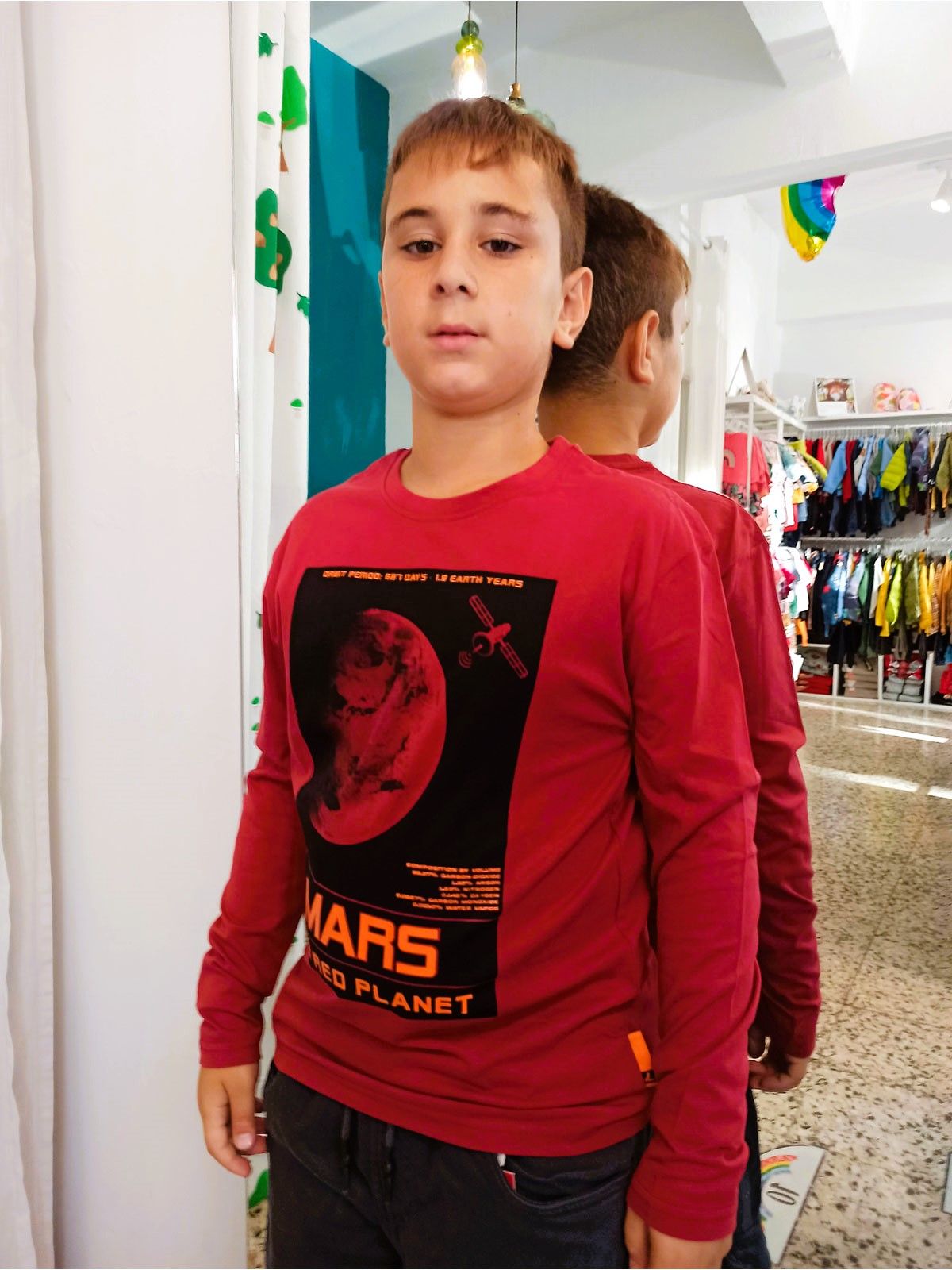 Μπλούζα μονόχρωμη με print Mars the red planet μπορντώ