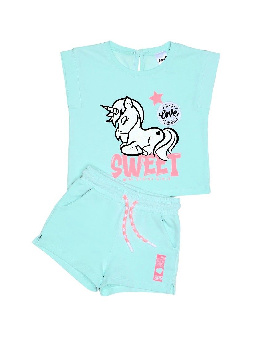Σετ βαμβακερό με φωτάκι και print unicorn ελληνικής ραφής βεραμάν