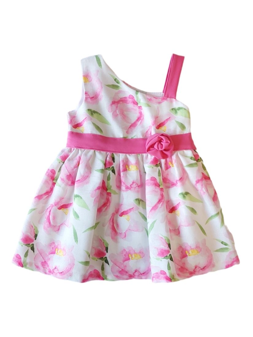Φόρεμα φλοράλ με ένα ώμο και λουλούδι στη μέση ελληνικής ραφής μεγάλο κορίτσι φούξια