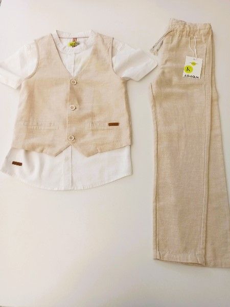 Ένα σετ με τα πιο μοδάτα χρώματα που κυκλοφορούν, αποτελείται από μπλούζα τύπου Polo με λεπτομέρειες πλέξης στο γιακά και print φύλλα, βερμούδα μονόχρωμη τύπου λινή με ελαστική ζώνη με δερμάτινες λεπτομέρειες, και τσάντα δώρου με μπογιές που ζωγραφίζεται! Ιδανικό για πιο ιδιαίτερες εμφανίσεις, για γάμο, βάφτιση αλλά και γενέθλια, και ως δώρο για να εντυπωσιάσετε με το design, την ποιότητα των ρούχων αλλά και με την πρωτότυπη συσκευασία!