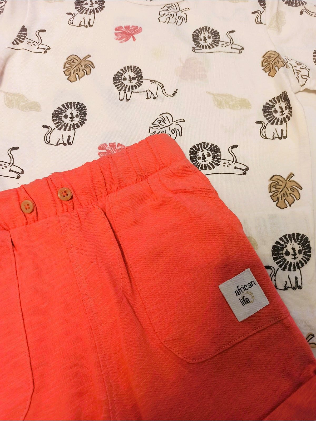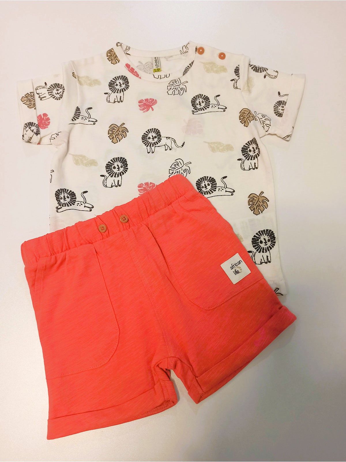 Ένα βρεφικό σετ με τα ζωάκια της ζούγκλας, 100% βαμβακερό, με λεπτομέρειες στο σορτς και τσάντα δώρου με μπογιές που ζωγραφίζεται! Ιδανικό για τις καθημερινές ανάγκες του μικρού σας, και ως δώρο για να εντυπωσιάσετε με το design, την ποιότητα των ρούχων αλλά και με την πρωτότυπη συσκευασία!