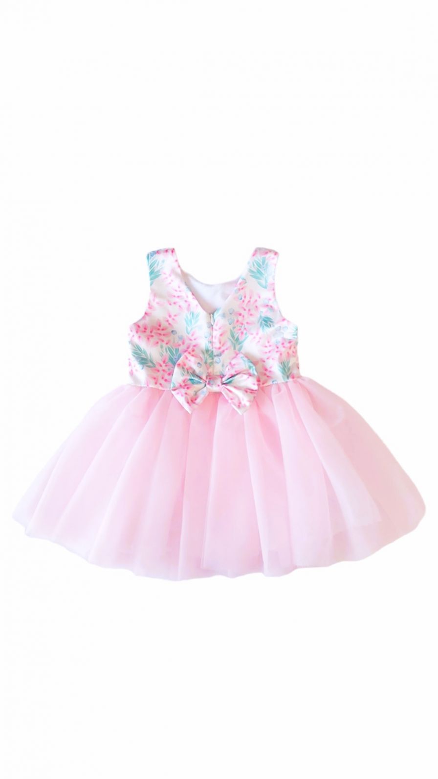 Πριγκιπικό φόρεμα με σατέν μπούστο και φούστα τούλι με φιόγκο στην πλάτη ελληνικής ραφής ροζ