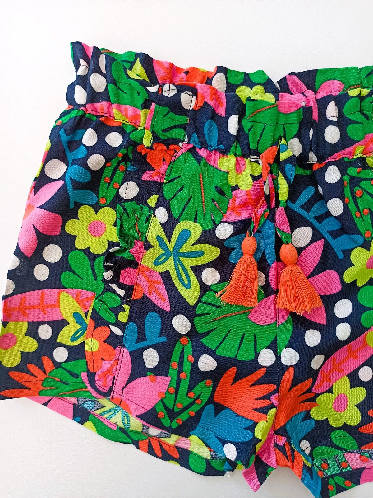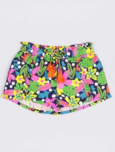 Σορτς φλοράλ με βολάν και λάστιχο στη μέση κοραλί