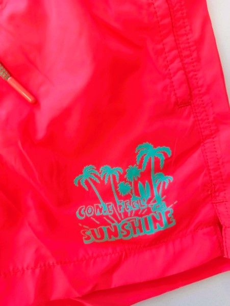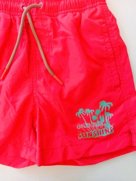 Μαγιώ βερμούδα fluo με τσέπη πίσω, λάστιχο και κορδόνι κοραλί