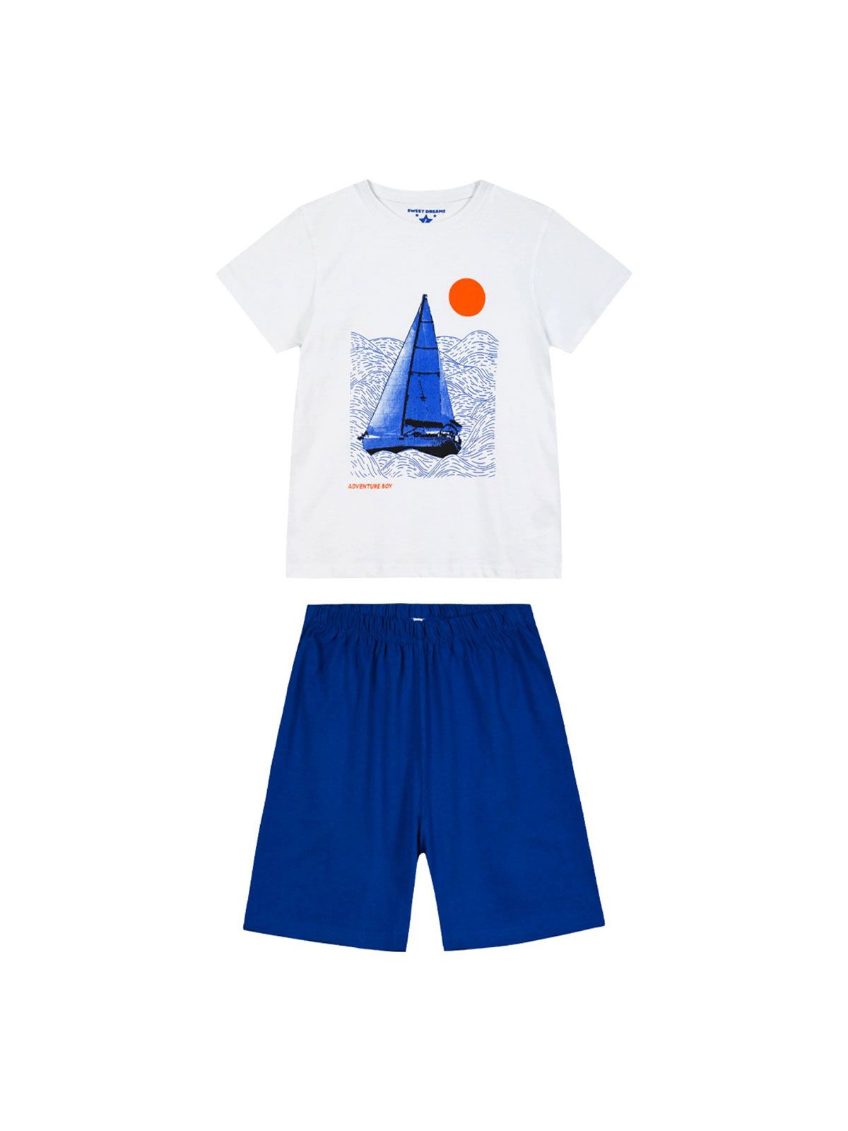 Σετ πυτζάμα βαμβακερή με print καράβι μπλε