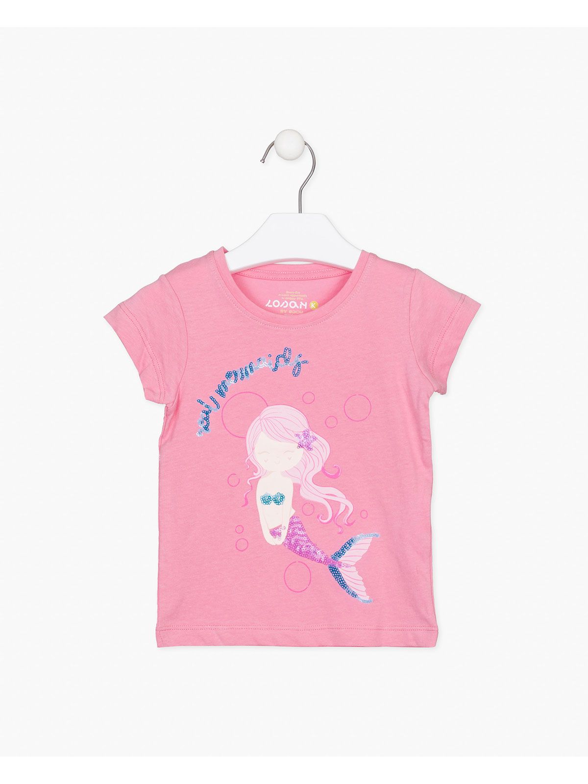 Μπλούζα κοντομάνικη με print γοργόνα με πούλιες ροζ
