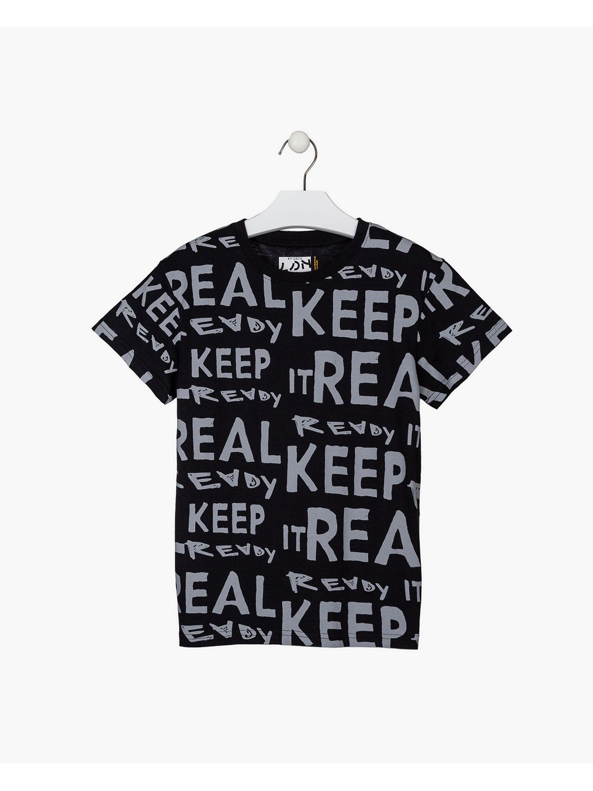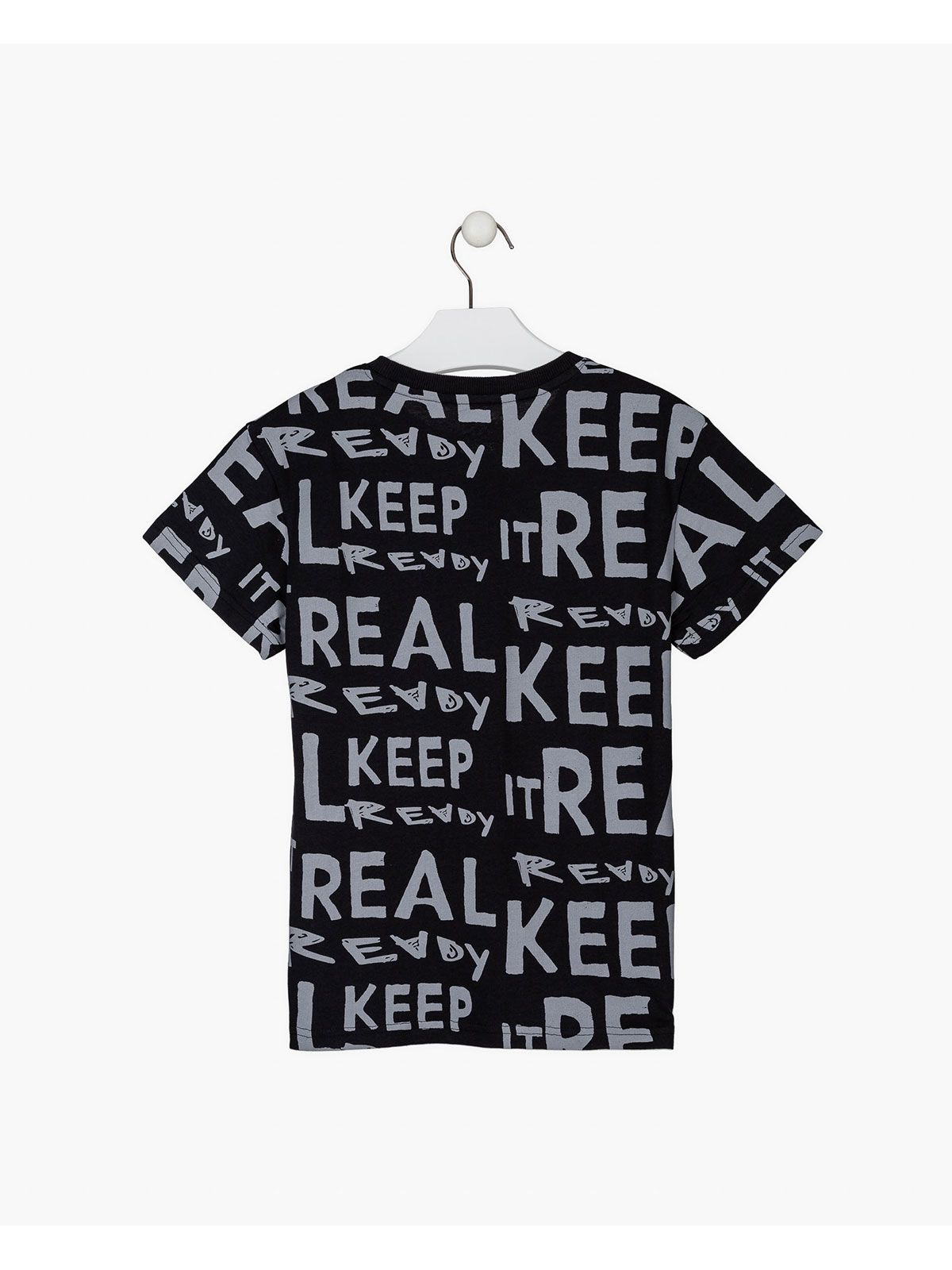 Μπλούζα βαμβακερή με λαιμόκοψη και print keep it real μαύρο