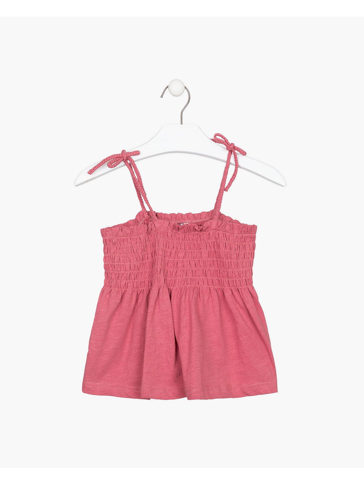 Τοπ μονόχρωμο βαμβακερό με πλέξιμο στις τιράντες και λάστιχο εκάι