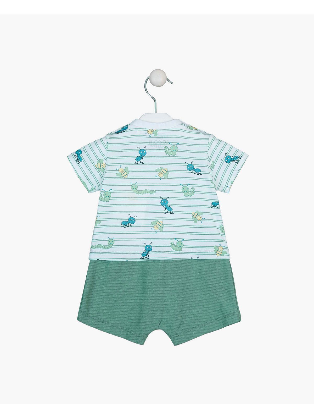 Ολόσωμο φορμάκι με μονόχρωμο σορτς και print bugs adventure πράσινο