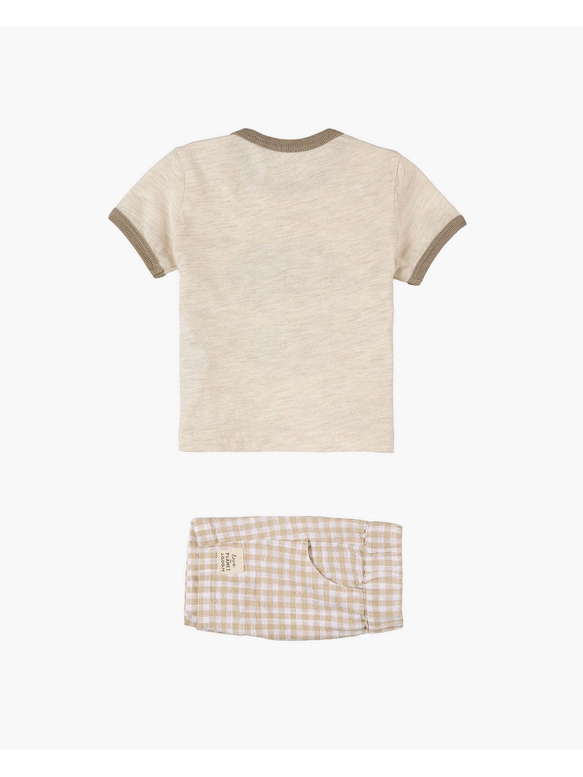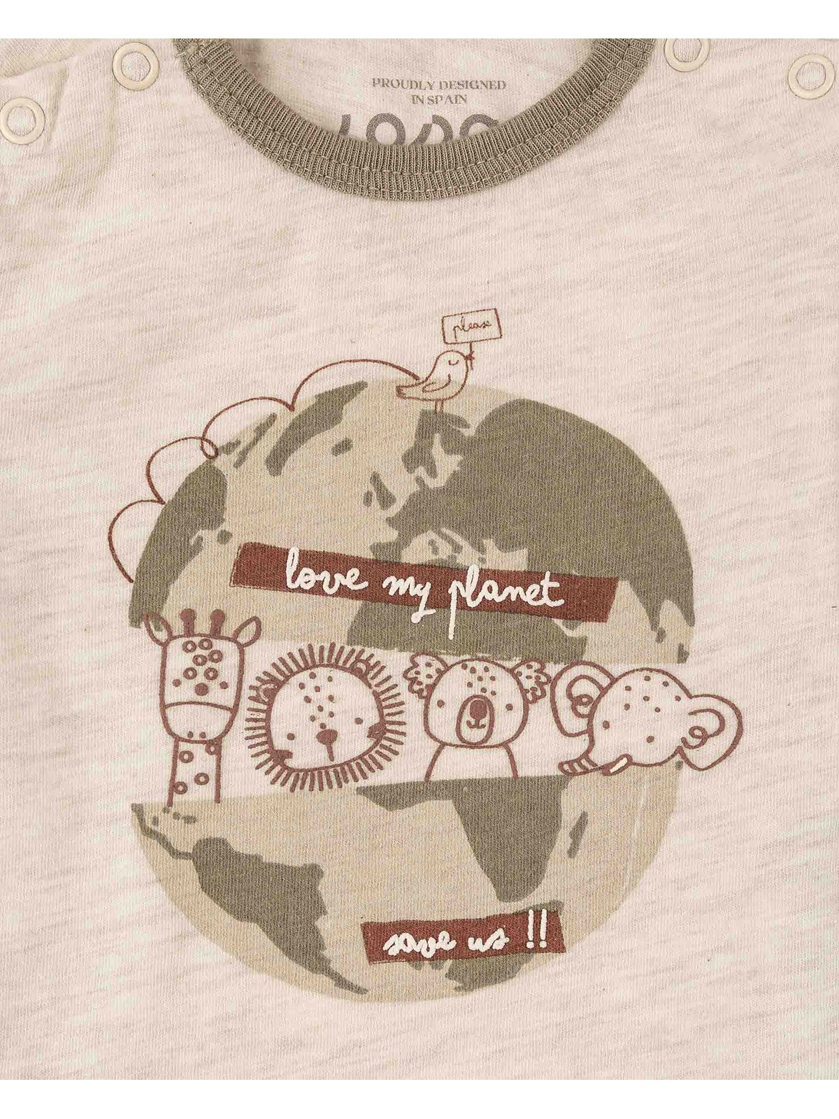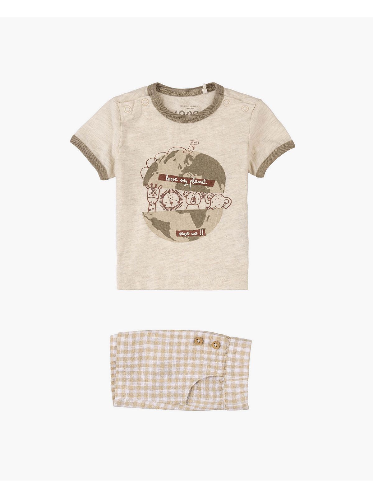 Σετ βρεφικό με καρώ σορτς και print save my planet μπεζ