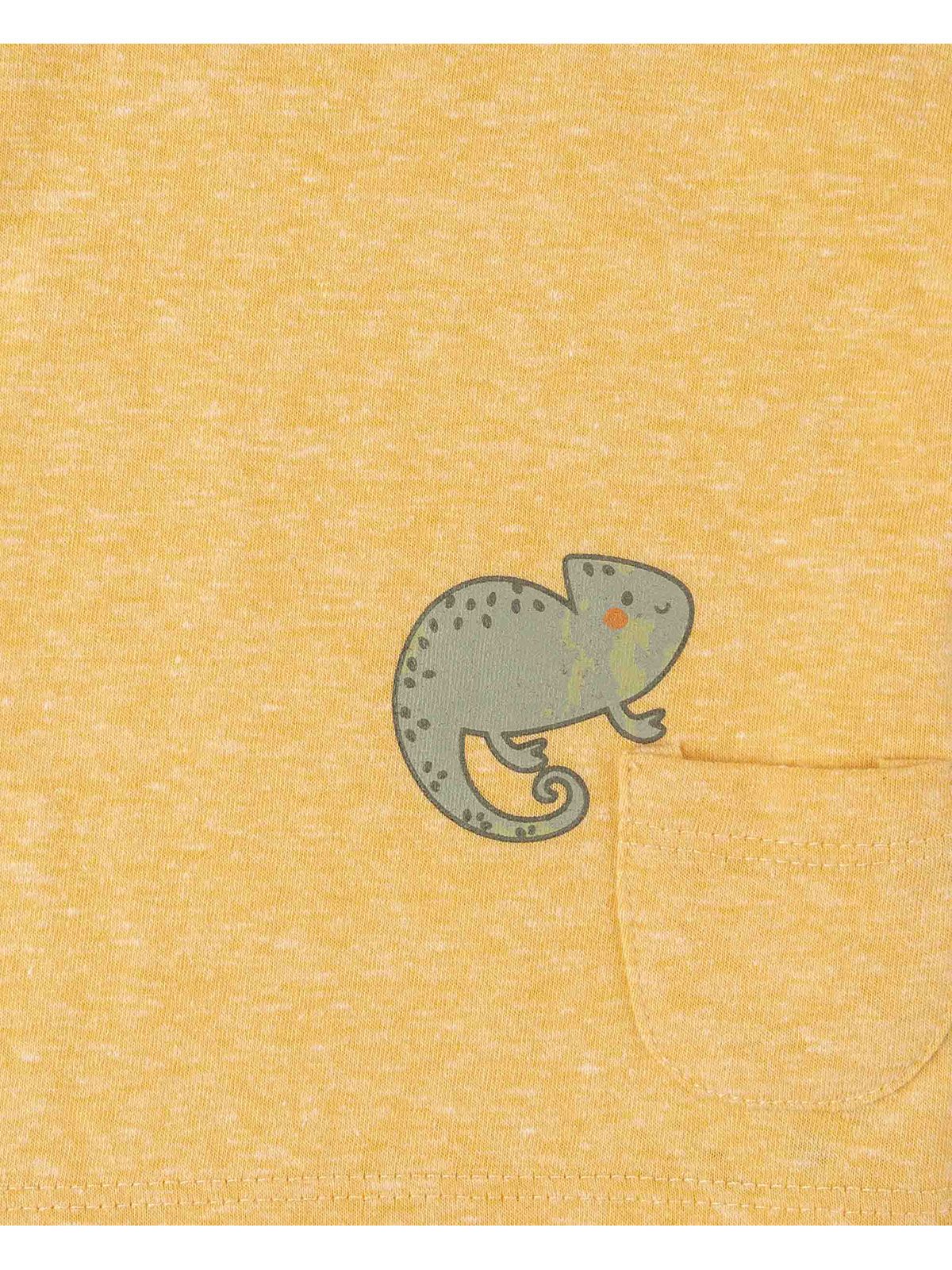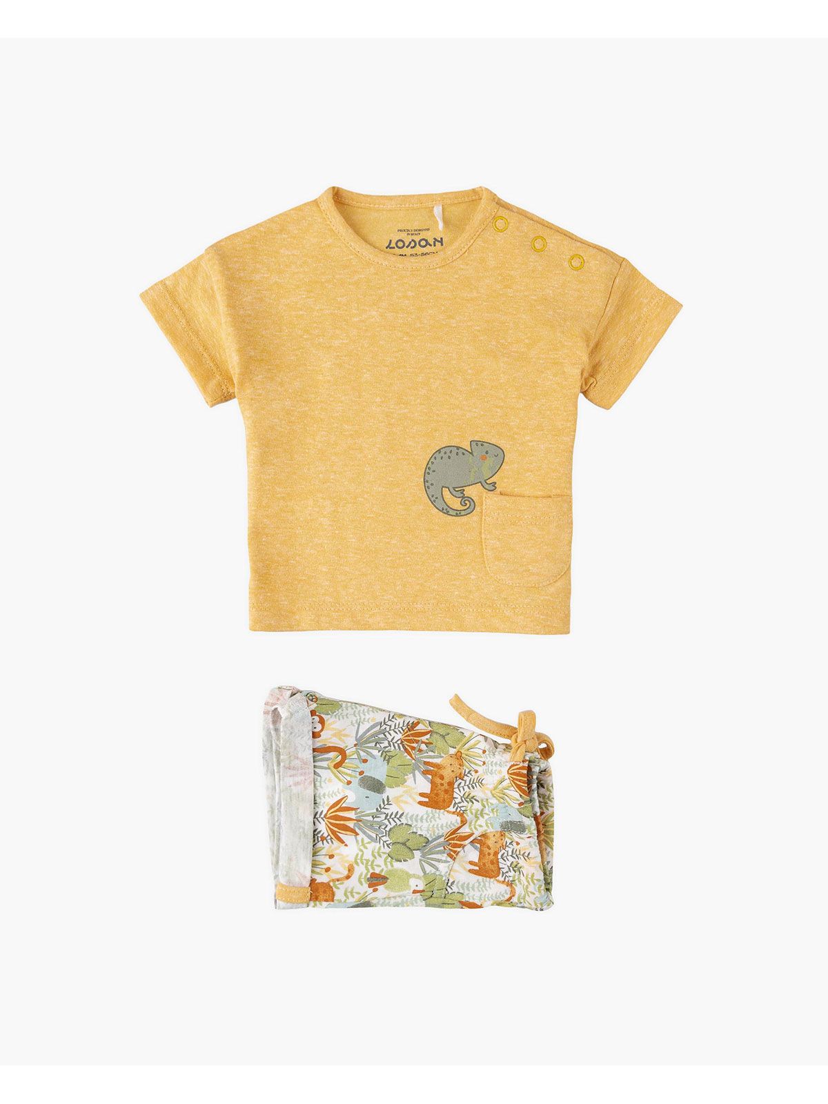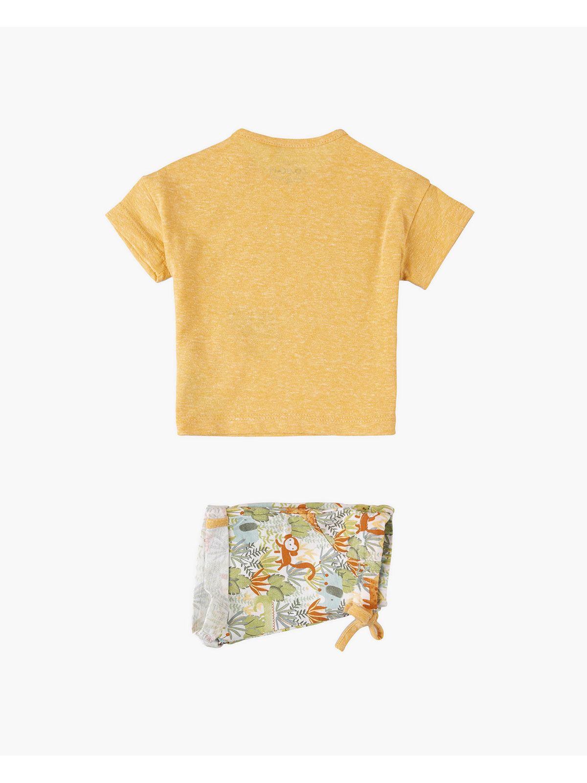Σετ βρεφικό βαμβακερό με σορτς print jungle μουσταρδί