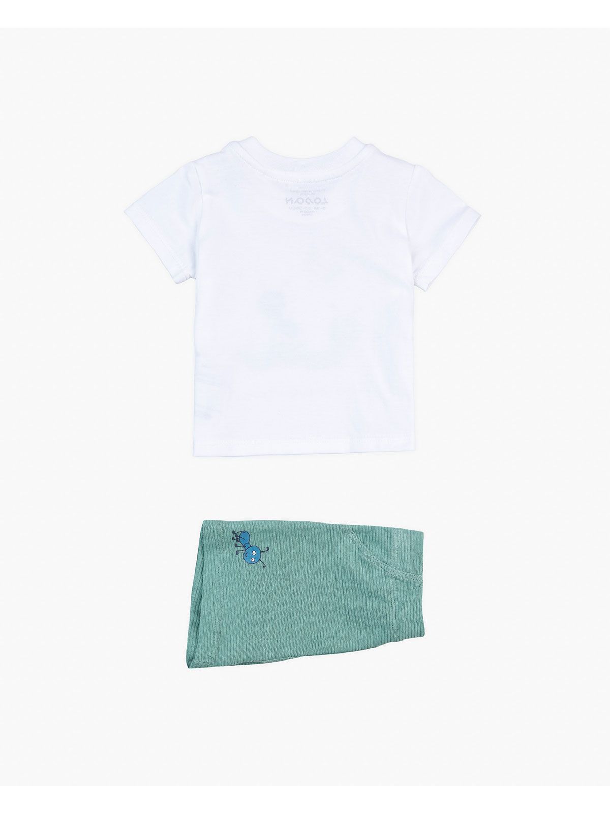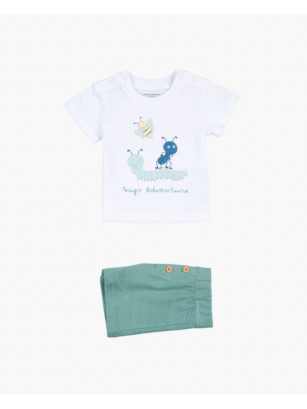 Σετ βρεφικό με ριπ σορτς και print bug adventure πράσινο