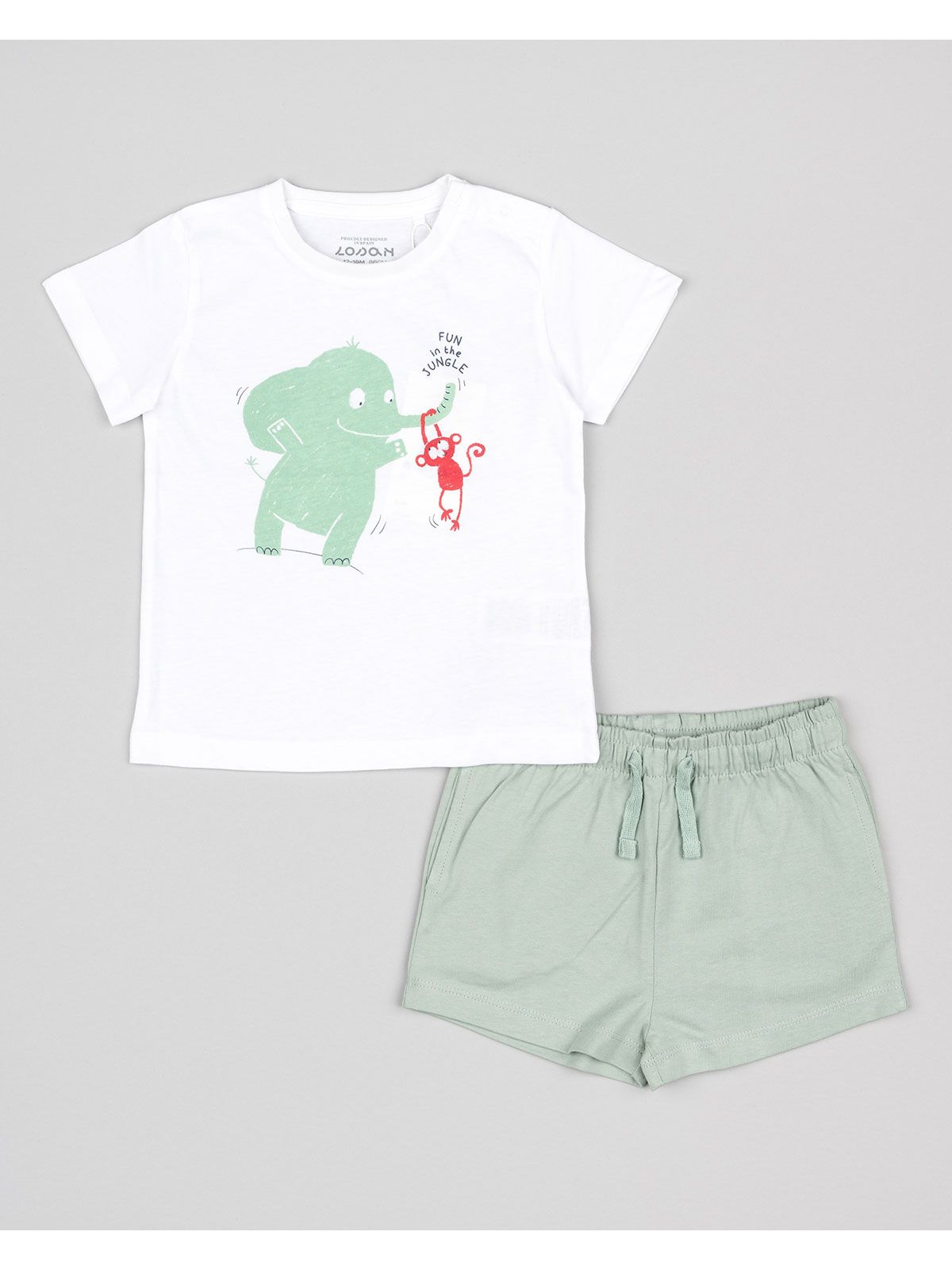 Σετ βαμβακερό μπλούζα και βερμούδα με print fun in the jungle μέντα
