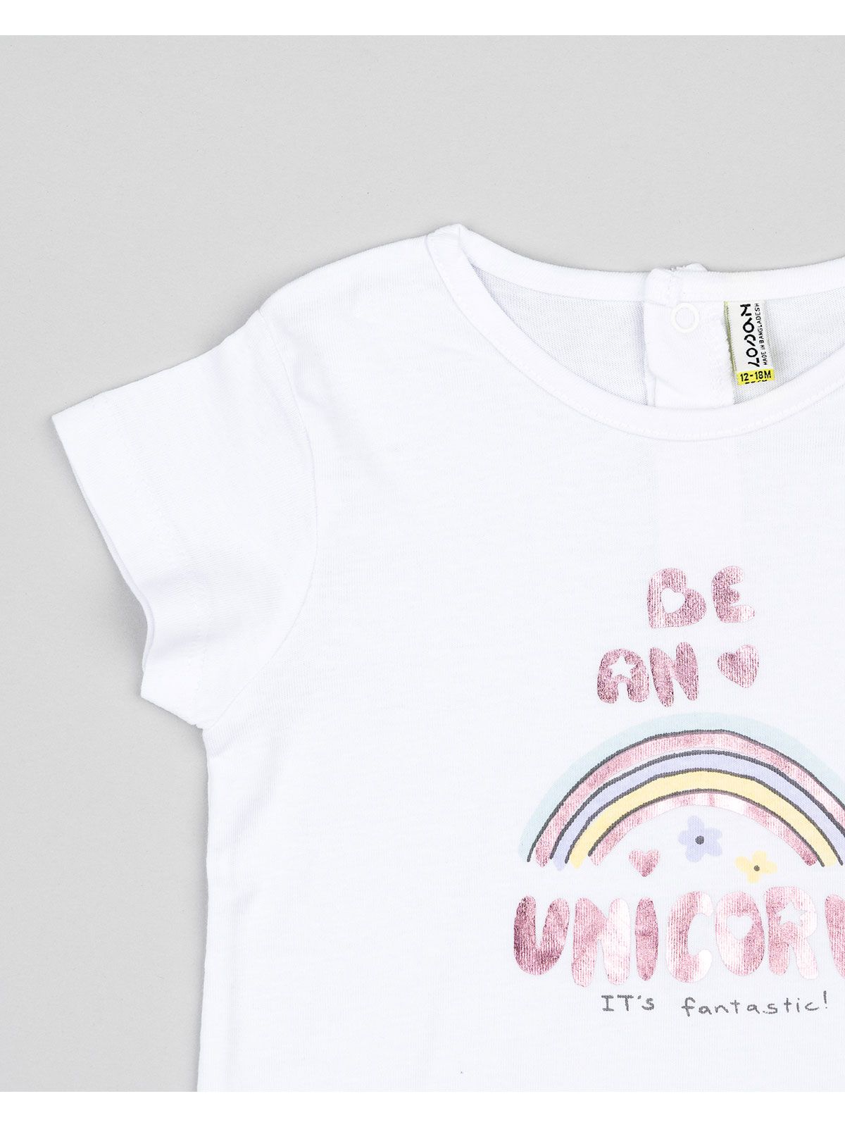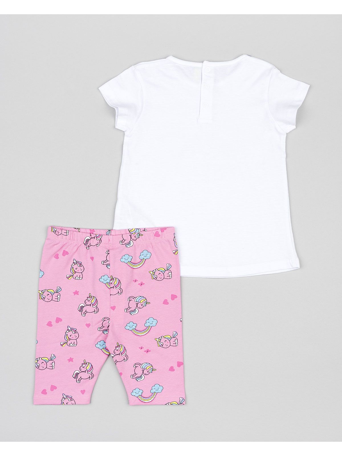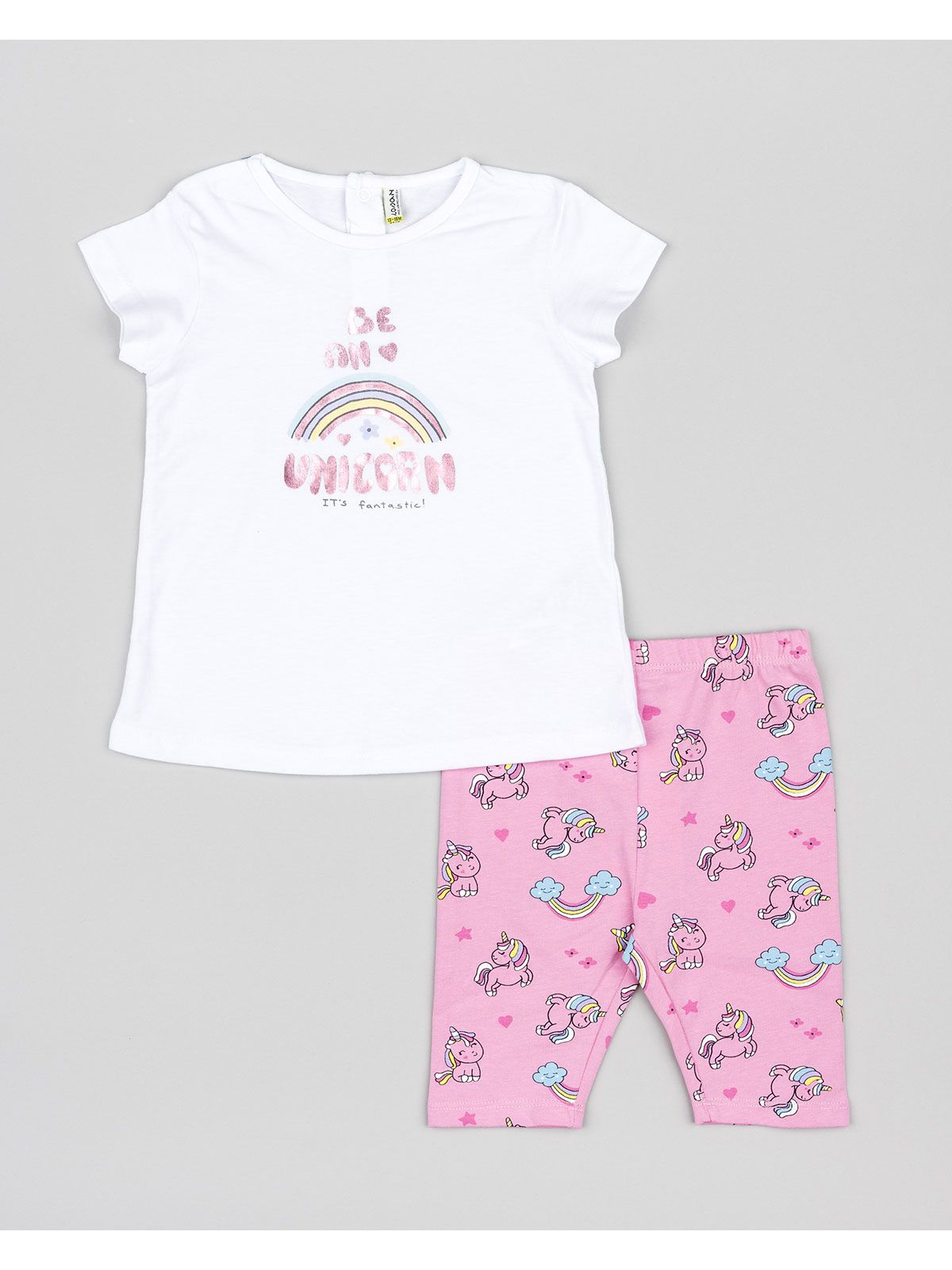 Σετ βαμβακερό μπλούζα με κάπρι κολάν και print unicorn ροζ