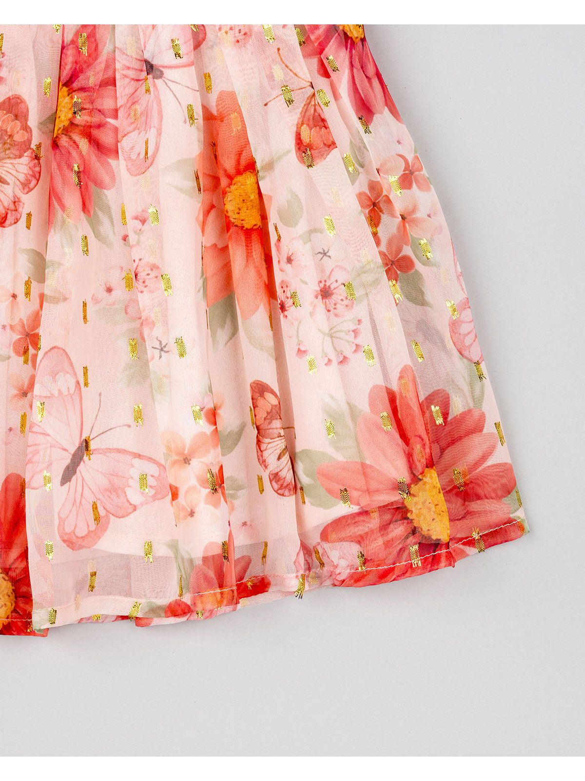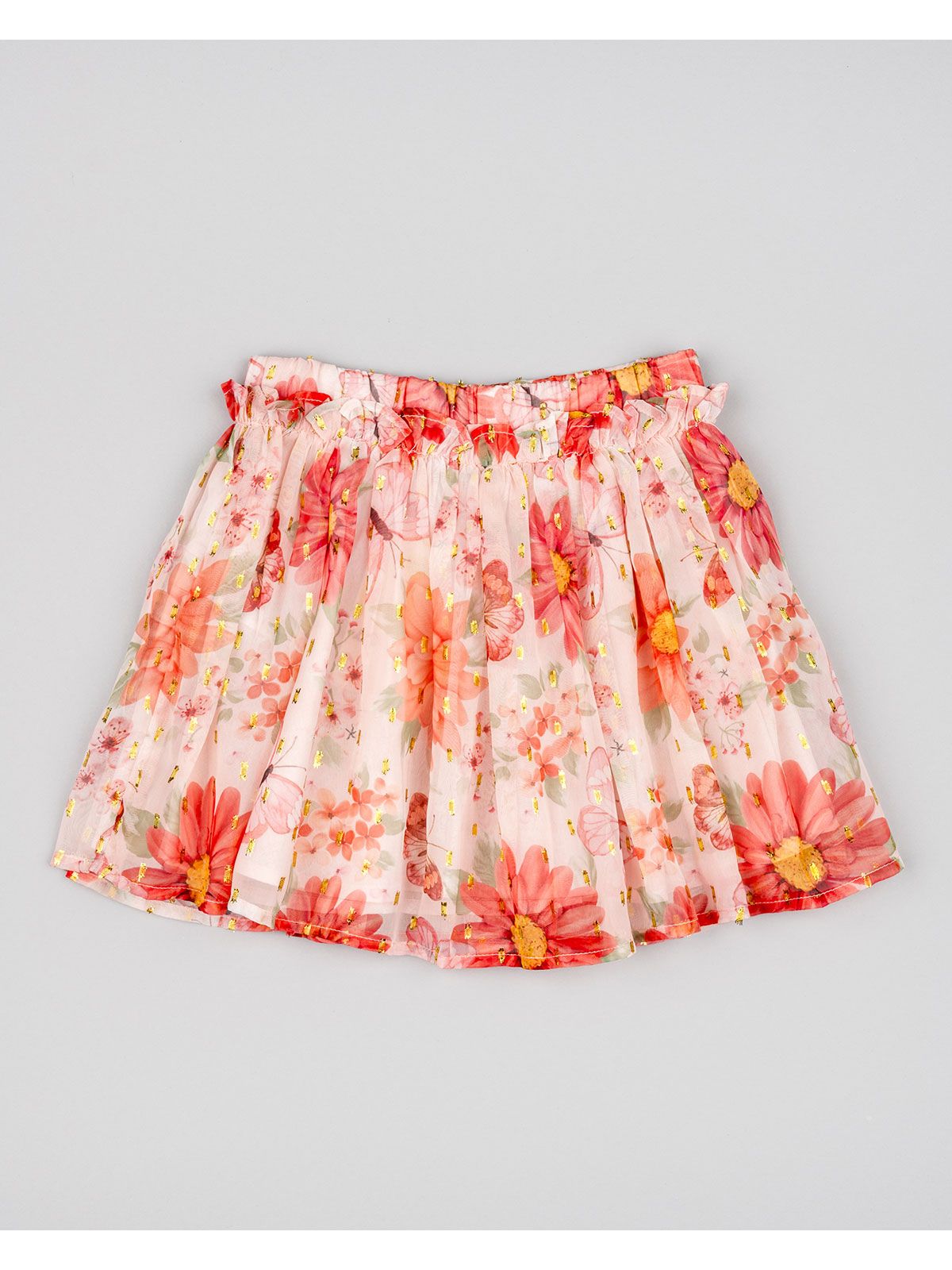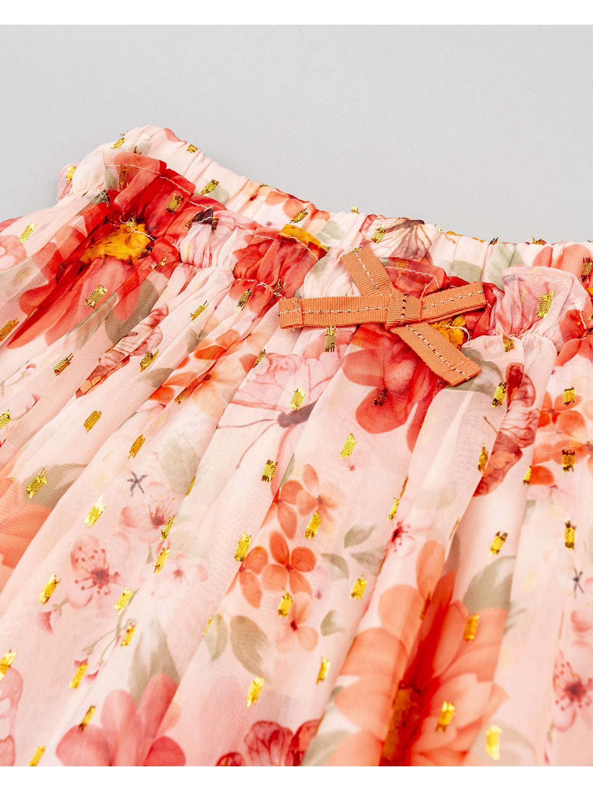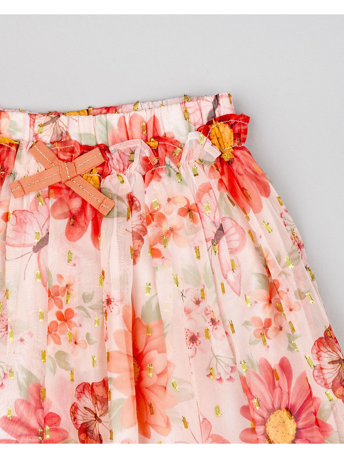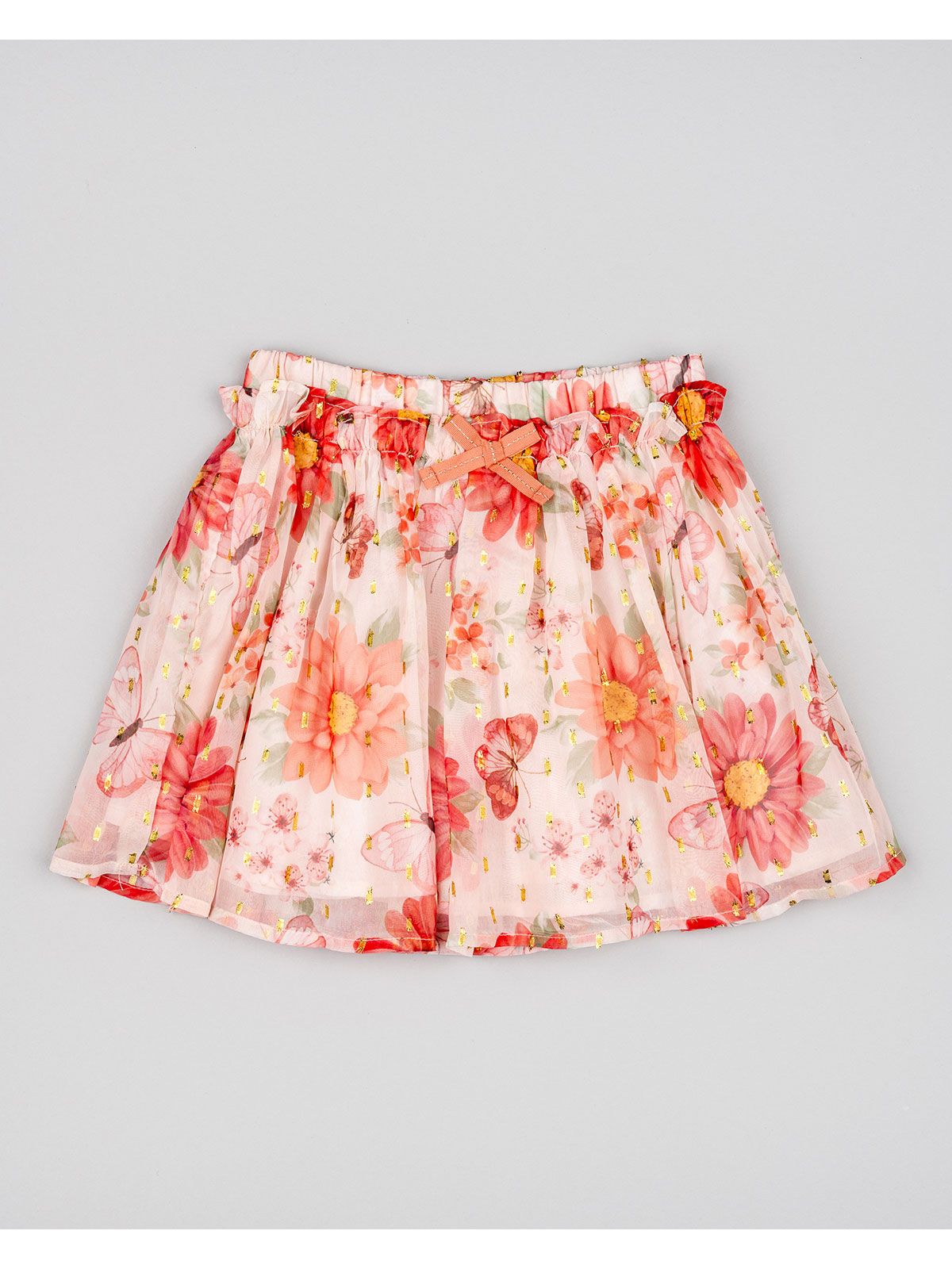 Φούστα τούλινι με βαμβακερή φόδρα print butterflies και φιόγκο ροζ