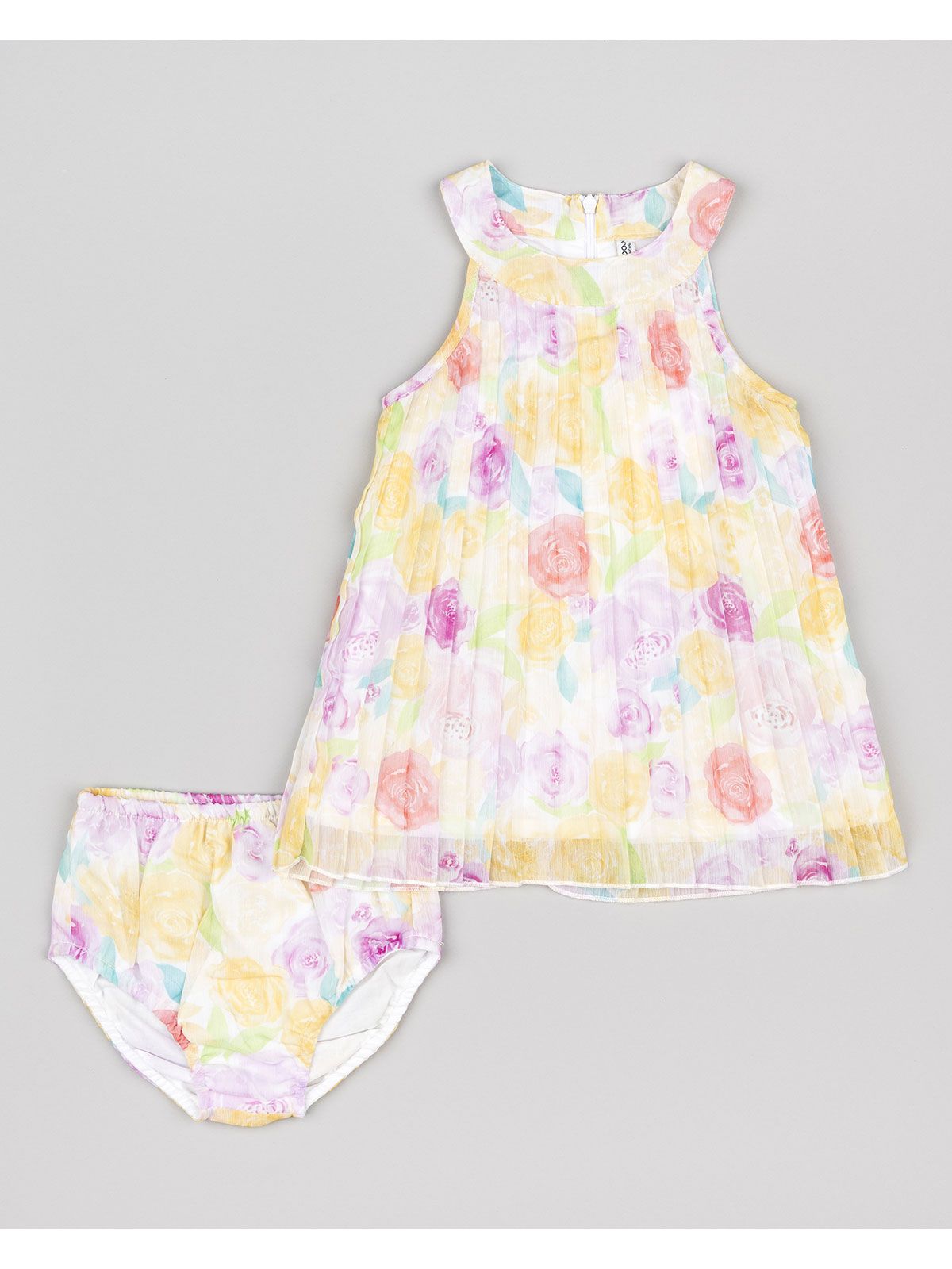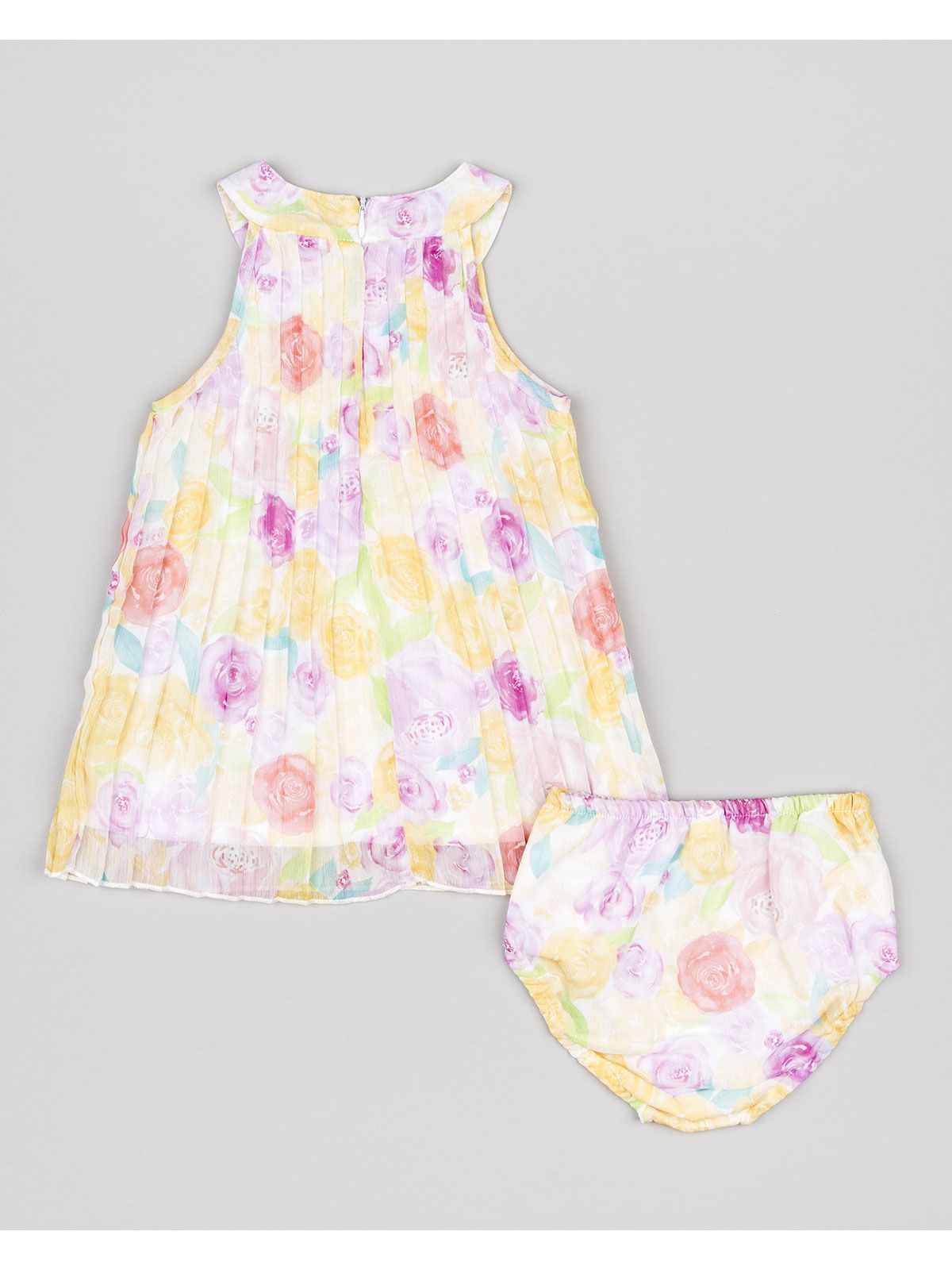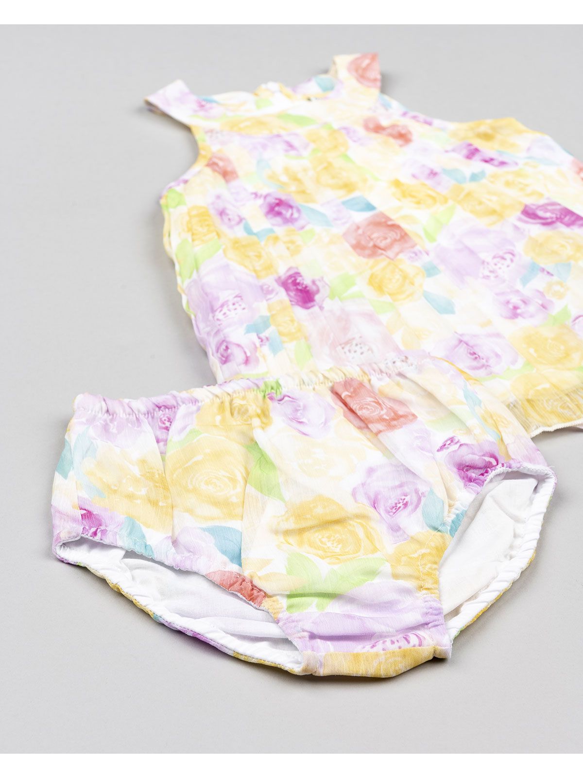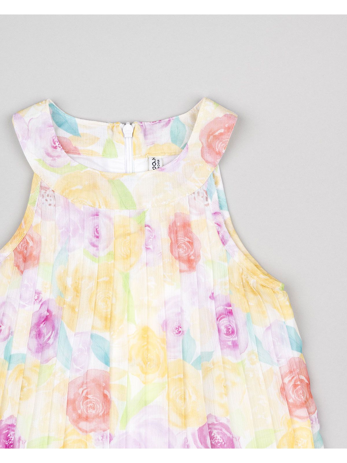 Φόρεμα φλοράλ ζορζέτα με πιέτες και βρακάκι φιγούρας κίτρινο