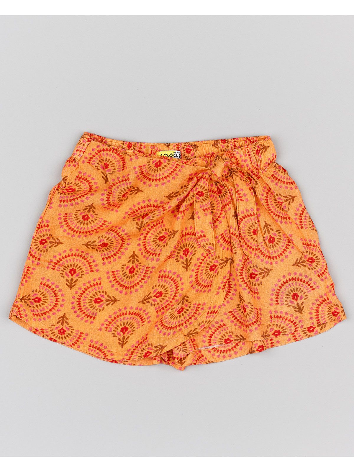 Φούστα σορτς με δέσιμο μπροστά και print λουλούδια κοραλί