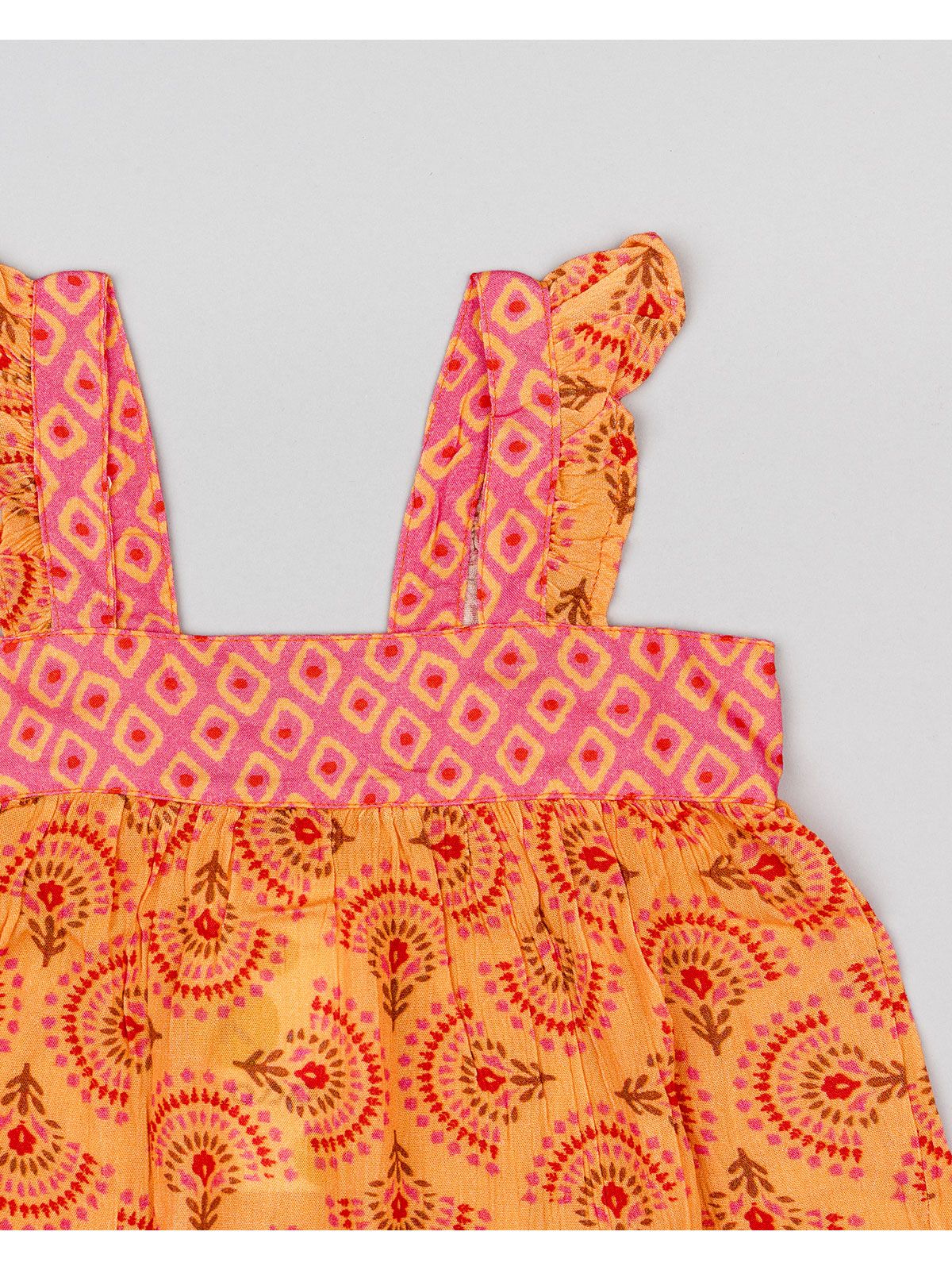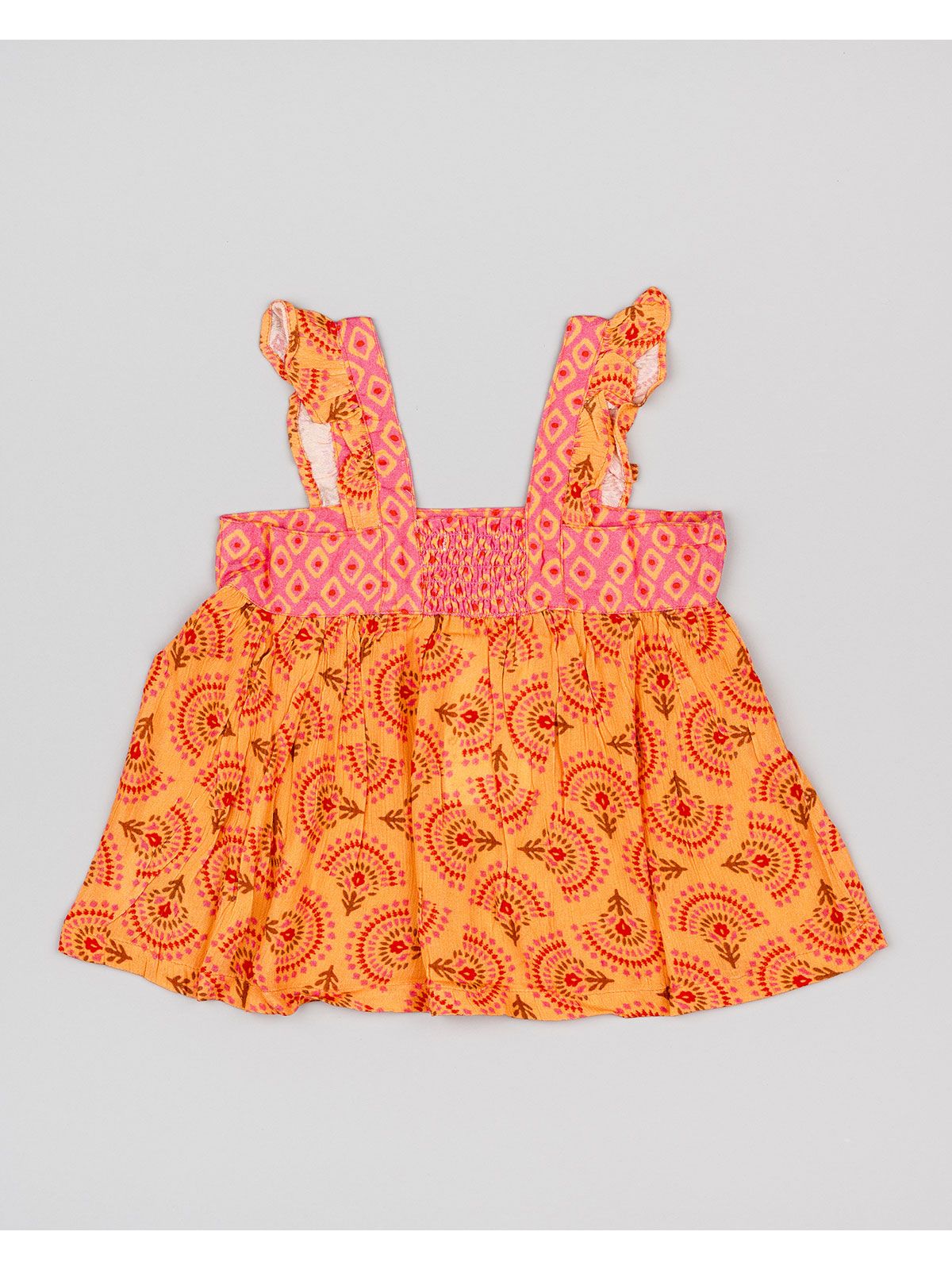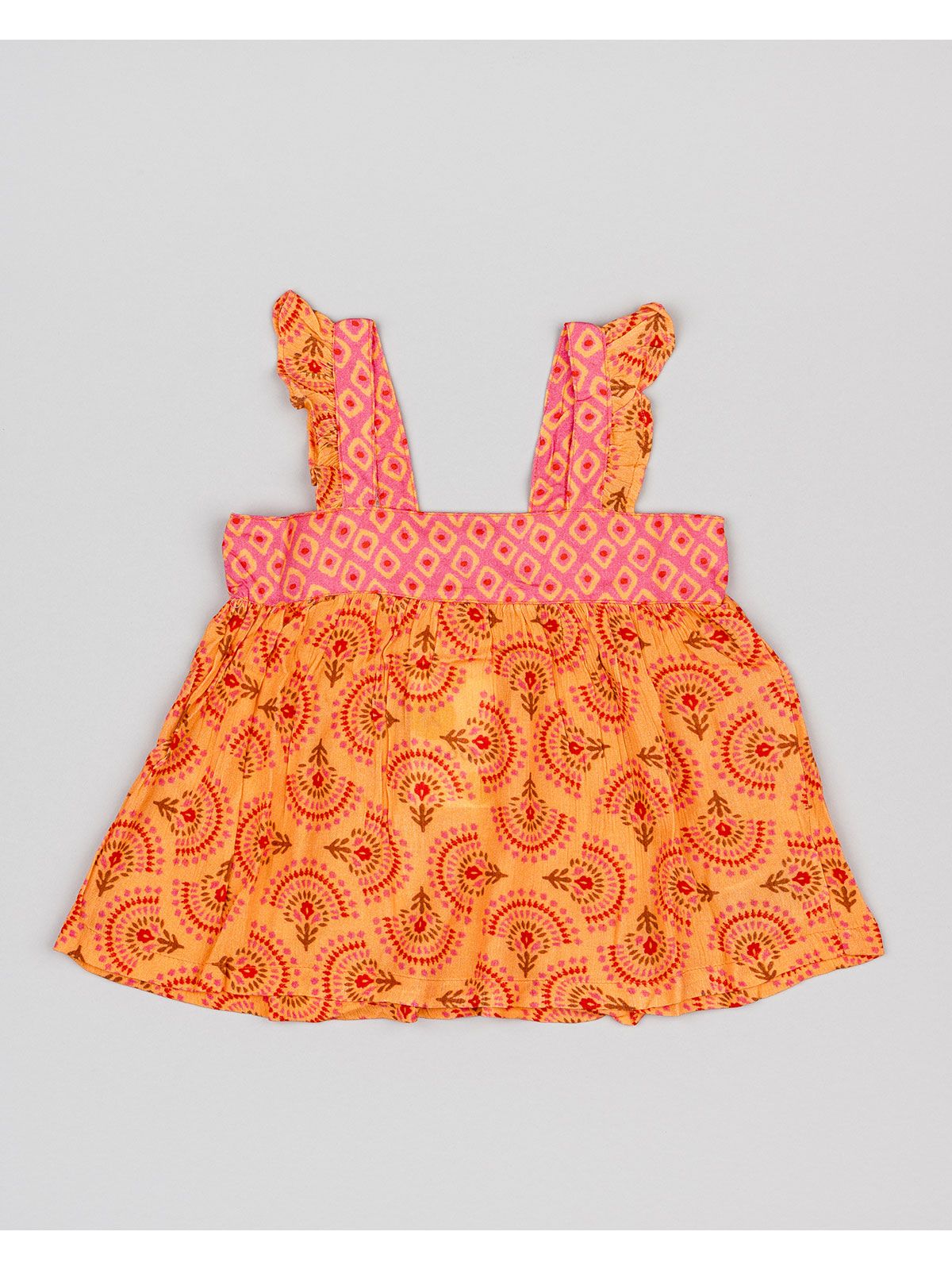 Τοπ φλάμα με βολάν στις τιράντες και print λουλούδια κοραλί