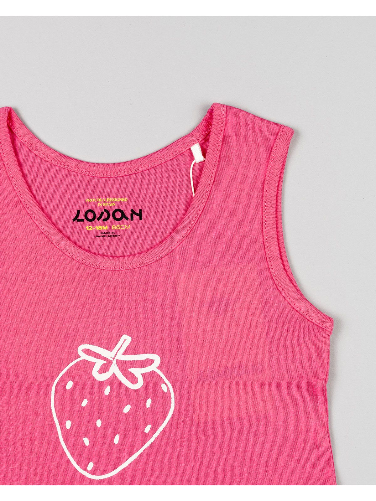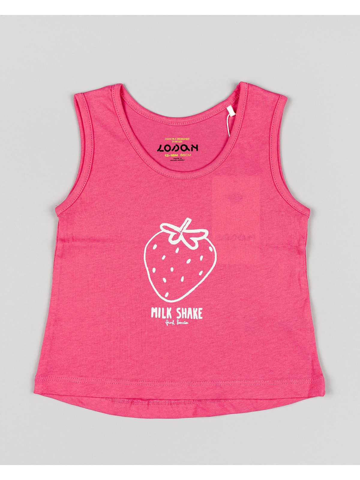Μπλούζα βαμβακερή αμάνικη με print strawberry milk shake φούξια