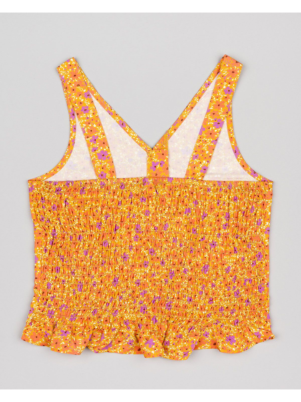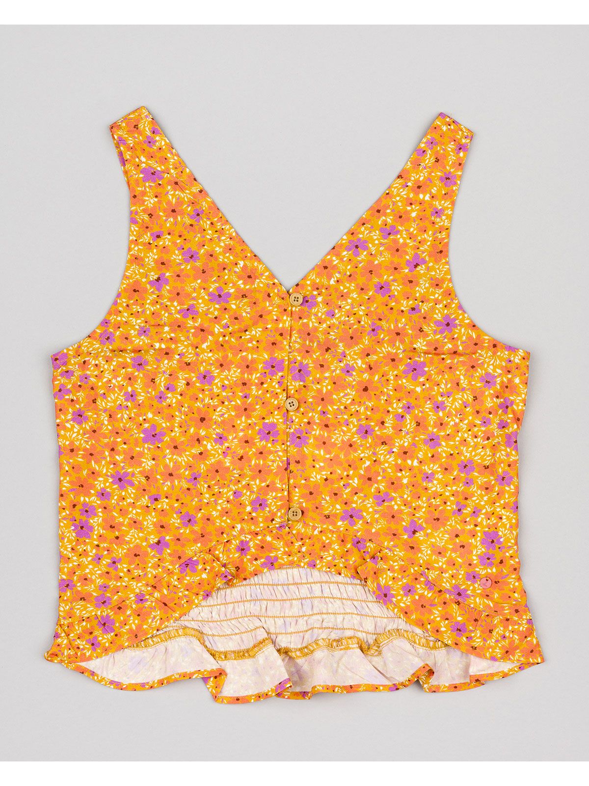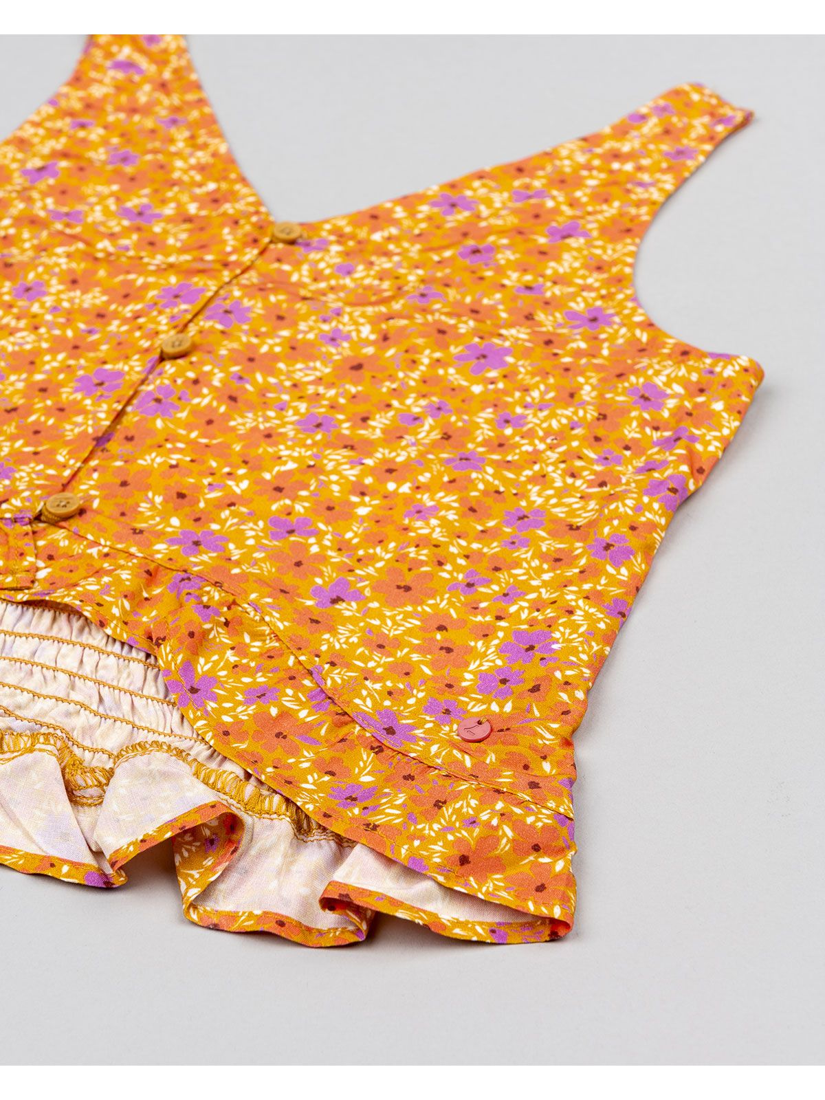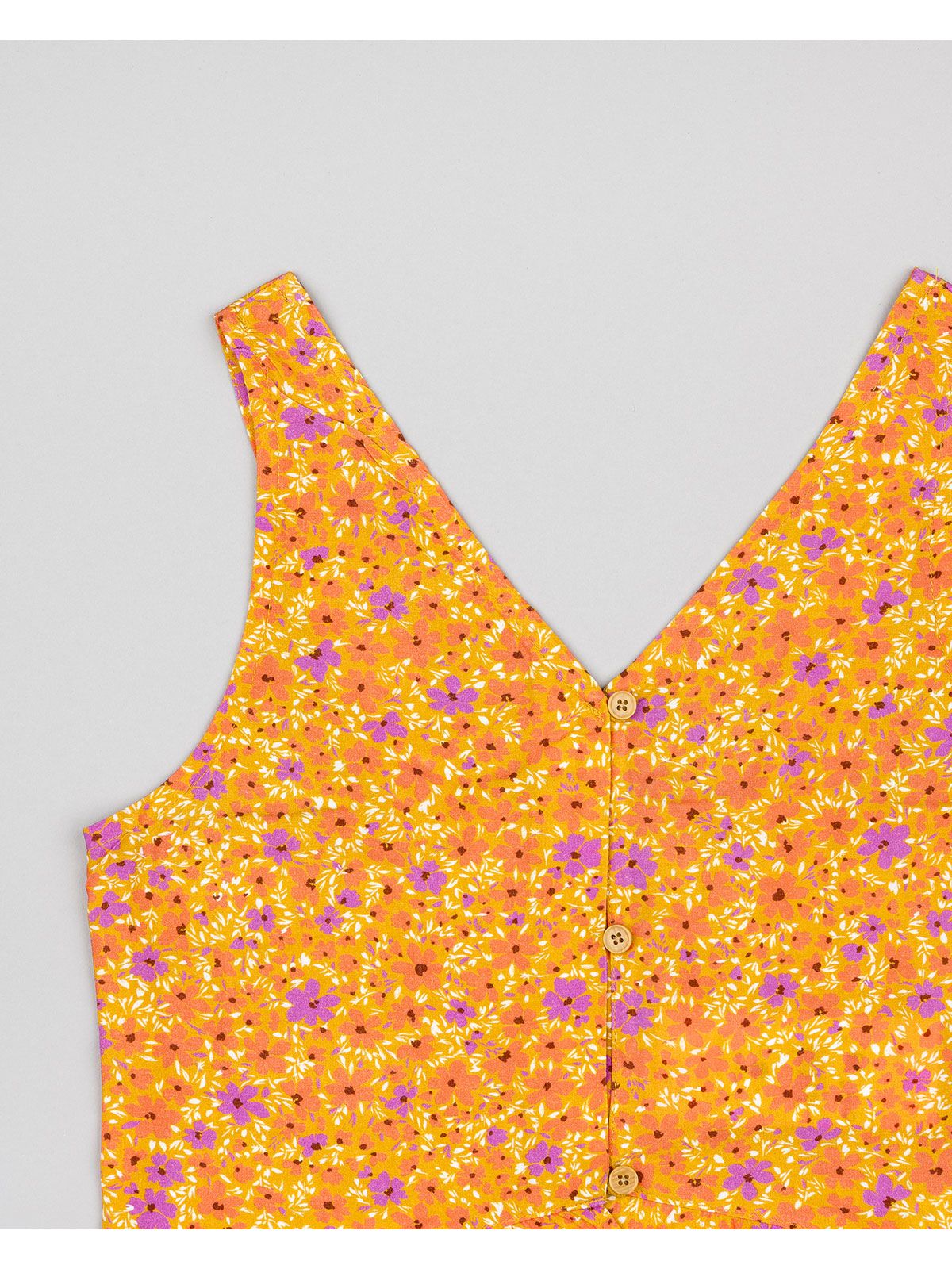 Τοπ floral με κουμπάκια και πλάτη σφηκοφωλιά πορτοκαλί