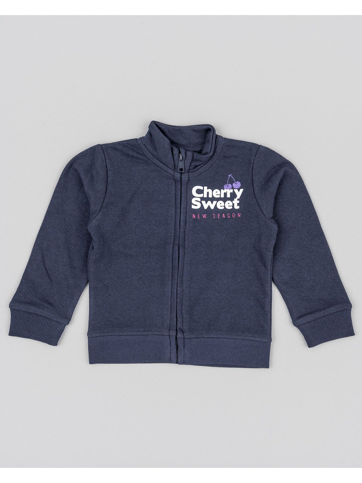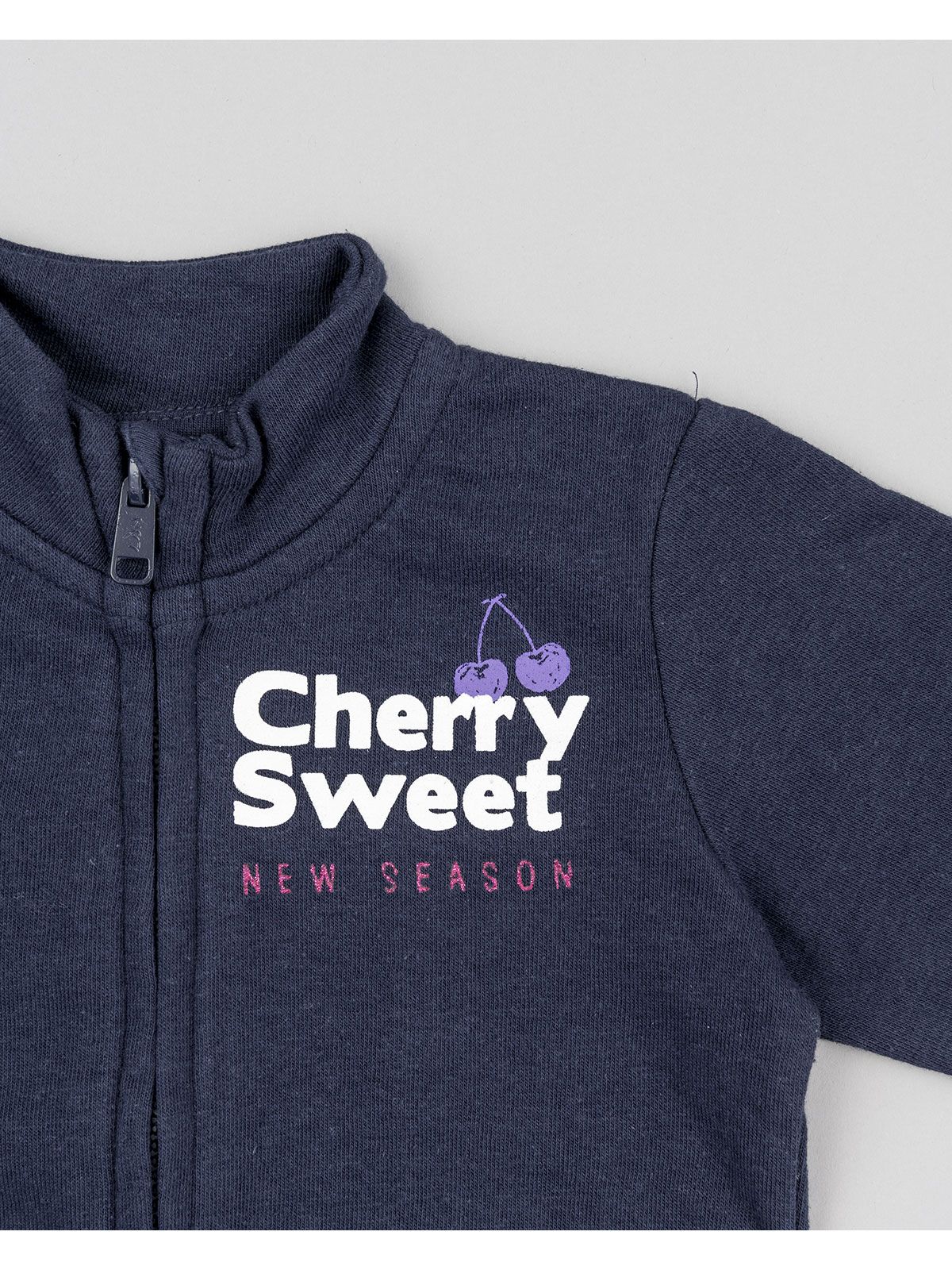 Ζακέτα λεπτή βαμβακερή μονόχρωμη με print κερασάκια μπλε
