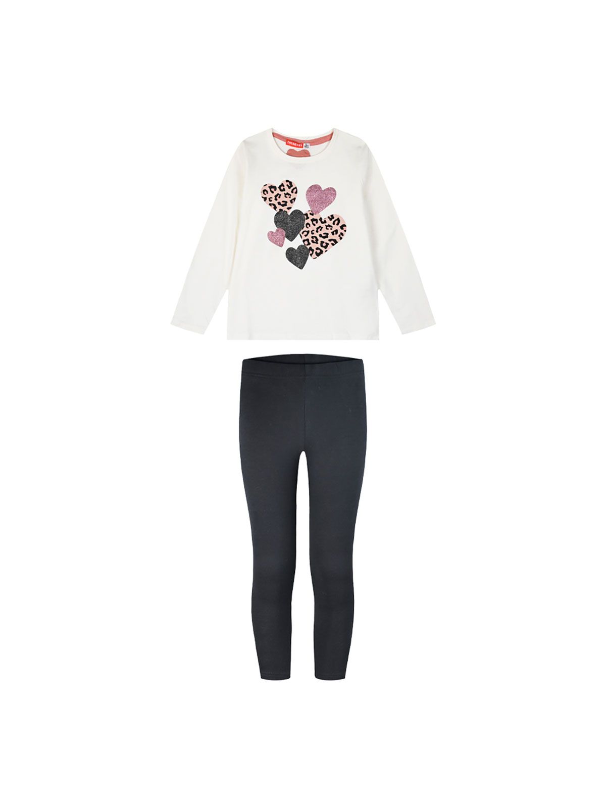 Σετ βαμβακερό μπλούζα με κολάν και print glitter hearts λευκό