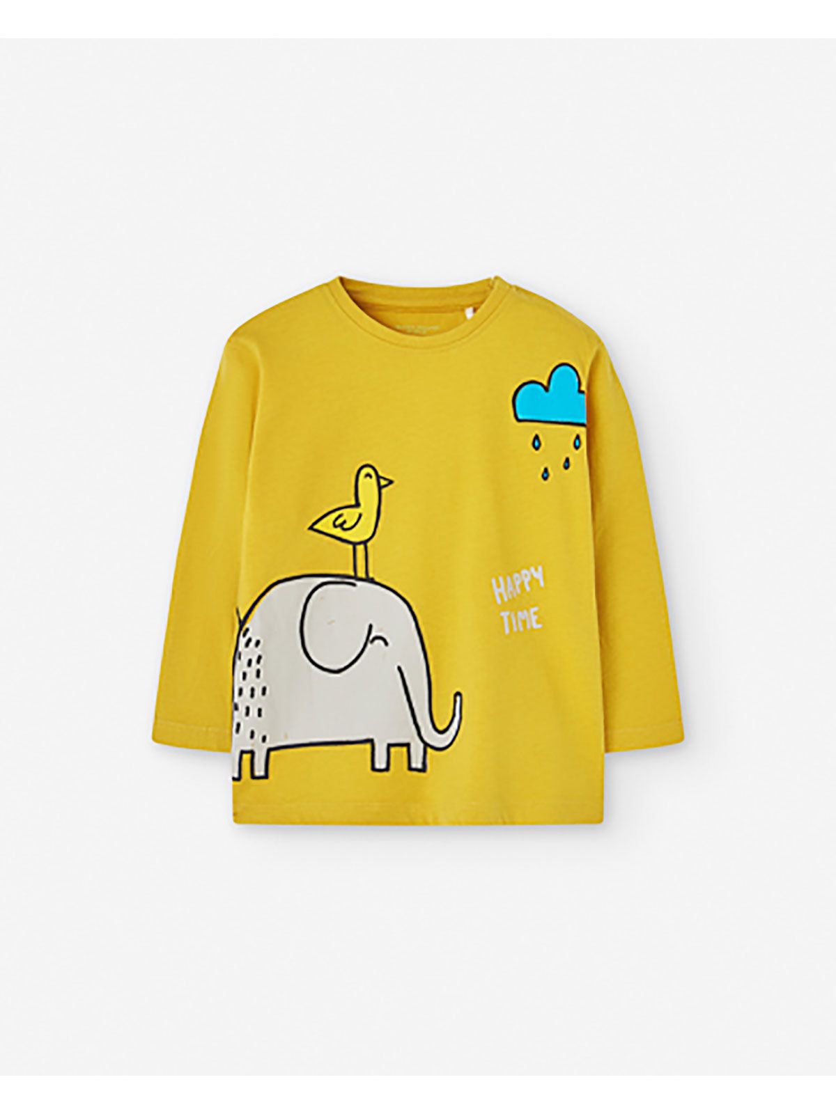 Μπλούζα βαμβακερή μακρυμάνικη με print elephant in the rain κίτρινο