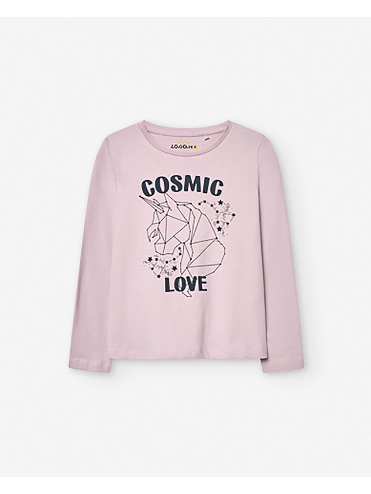 Μπλούζα βαμβακερή μακρυμάνικη με print unicorn and stars λιλά