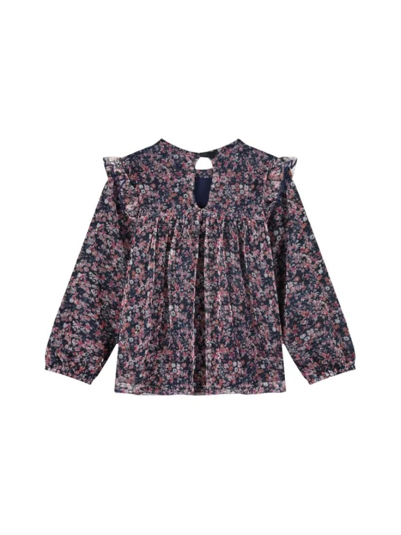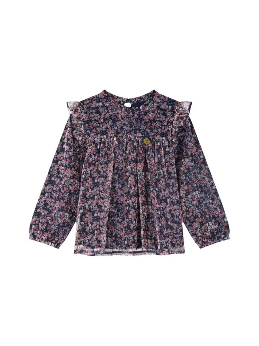 Φλοράλ πουκαμίσα με βολάν και μεταλική λεπτομέρεια ροζ