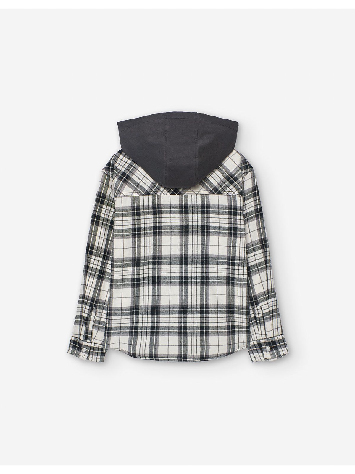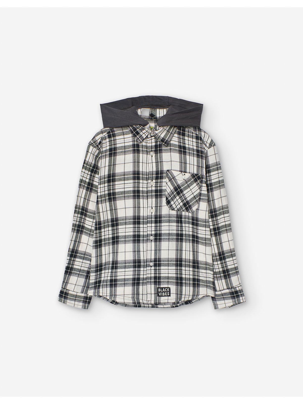 Πουκάμισο καρώ με αποσπώμενη κουκούλα και τσέπη Black Vibes μαύρο