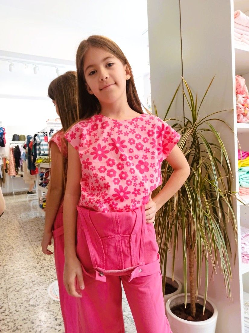 Κροπ τοπ φλοράλ κοντομάνικο φούξια