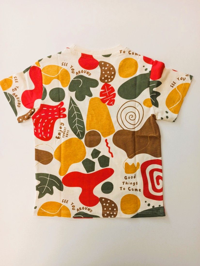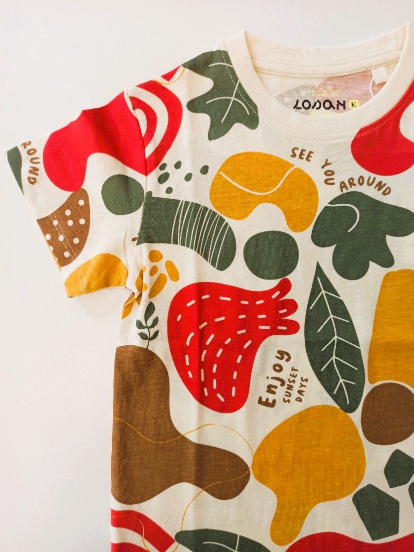 Μπλούζα κοντομάνικη με print leaves χακί