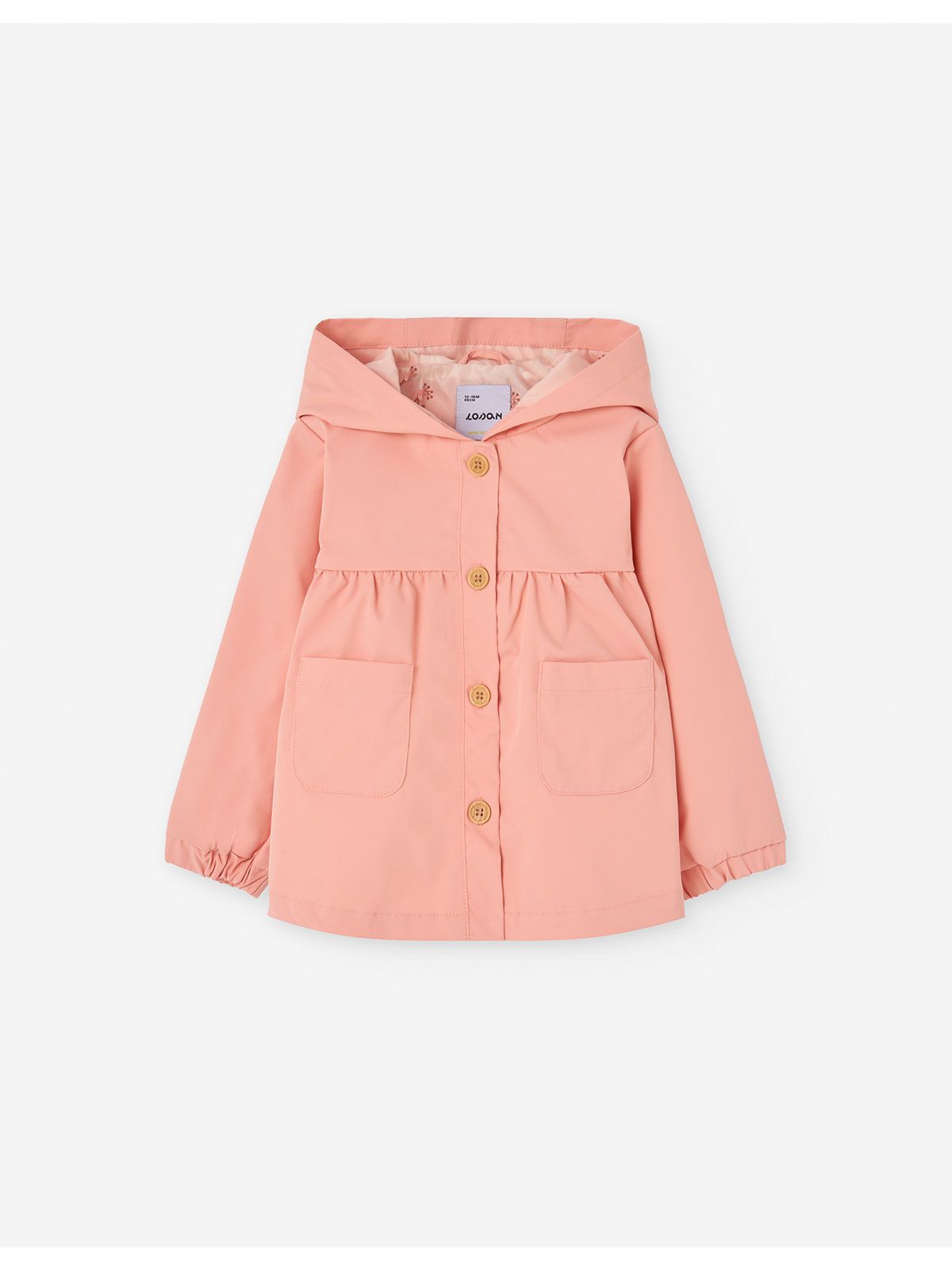 Πανωφόρι αντιανεμικό μονόχρωμο με κουκούλα και τσέπες girl peach