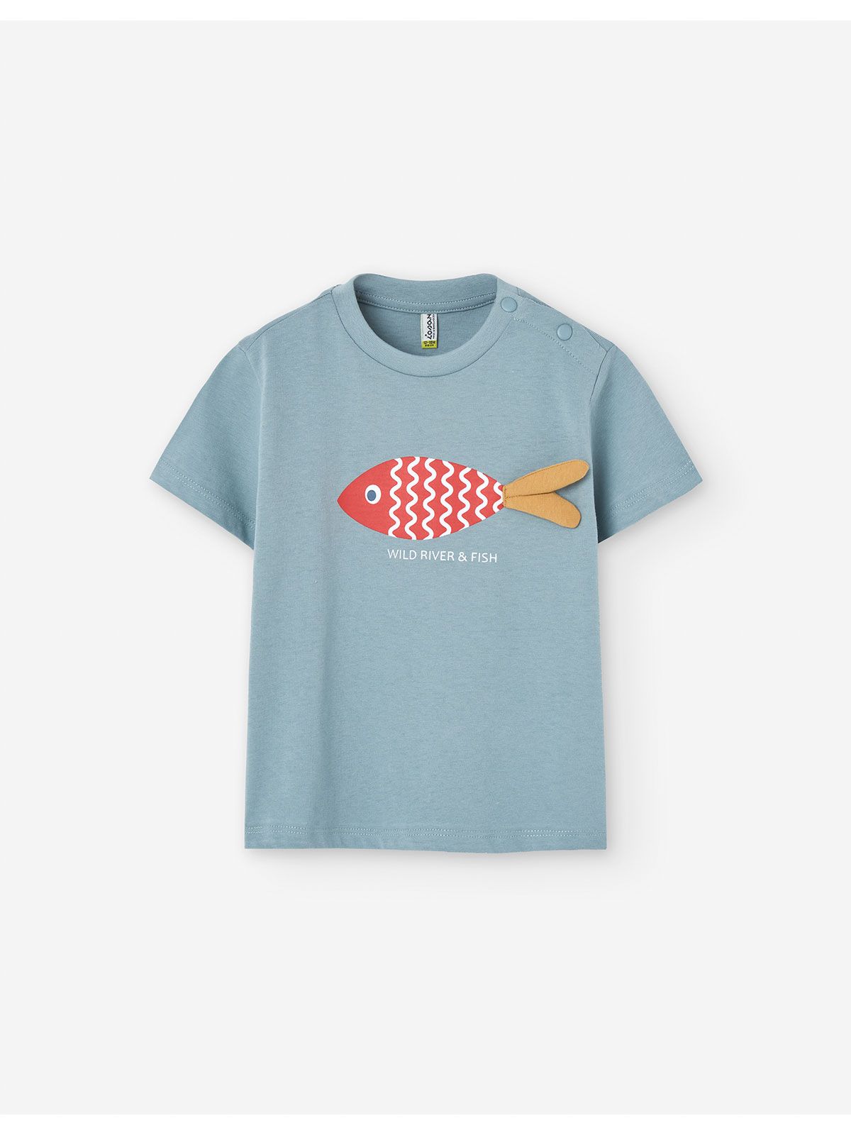 Mπλούζα κοντομάνικη με print 'wild river and fish' με 3D ουρά πετρόλ