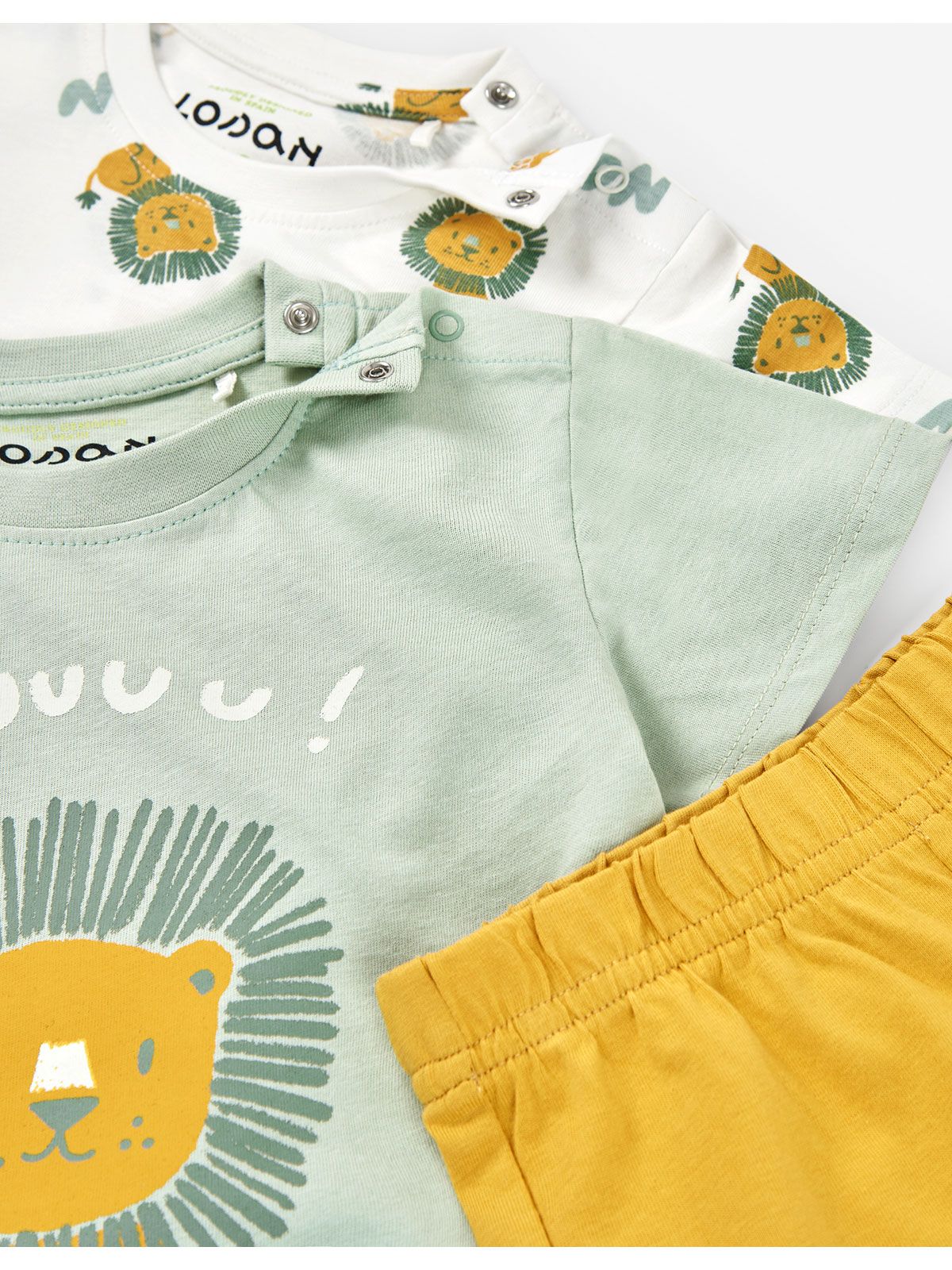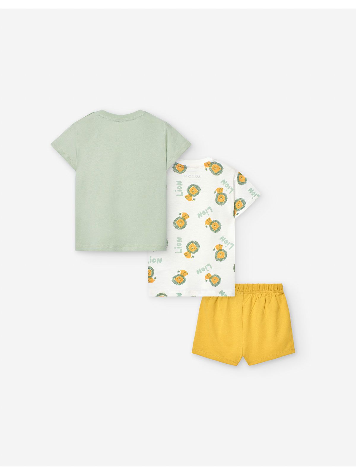Τριπλέτα βαμβακερή με print λιονταράκια χακί