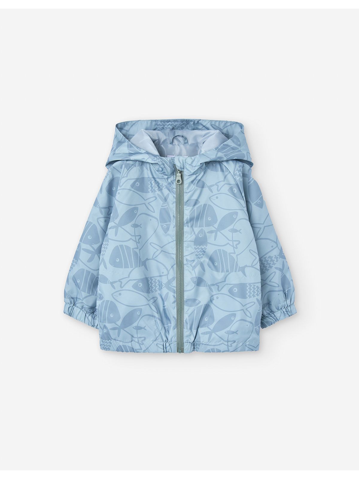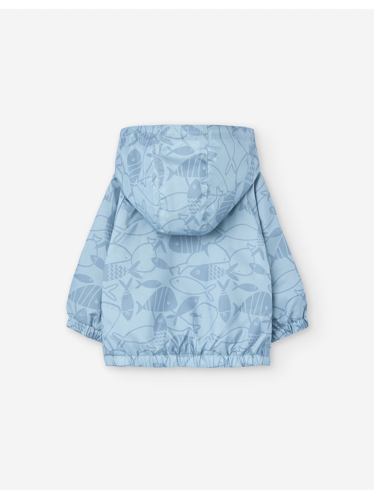 Πανωφόρι αντιανεμικό με κουκούλα και τσέπες με print βυθός γαλάζιο