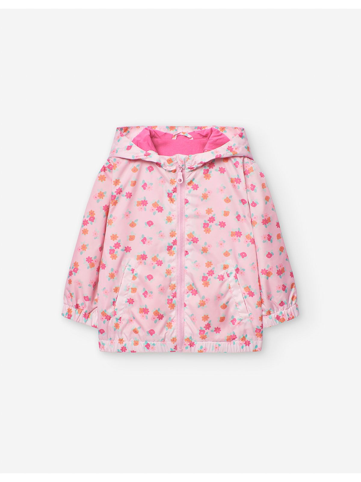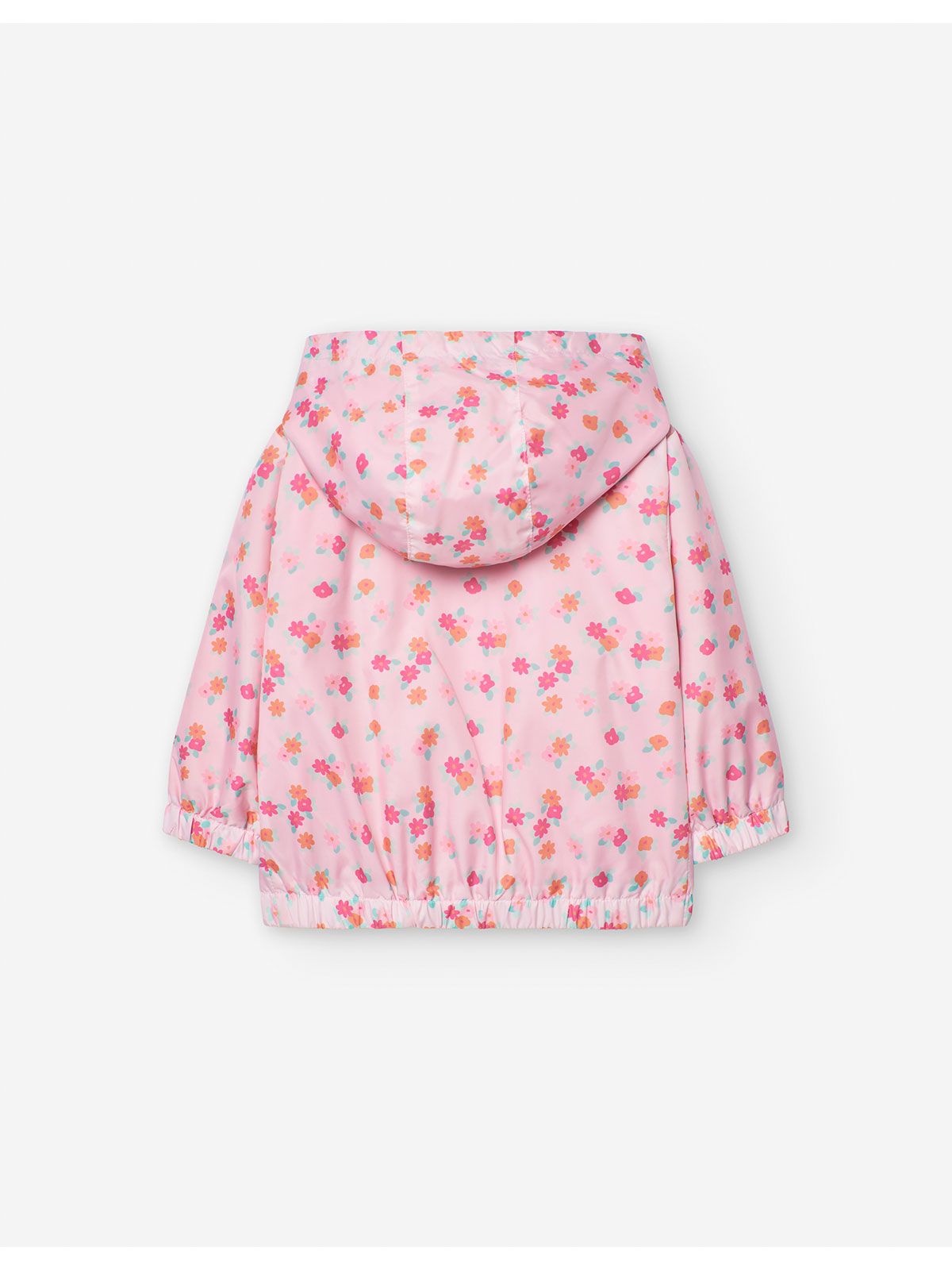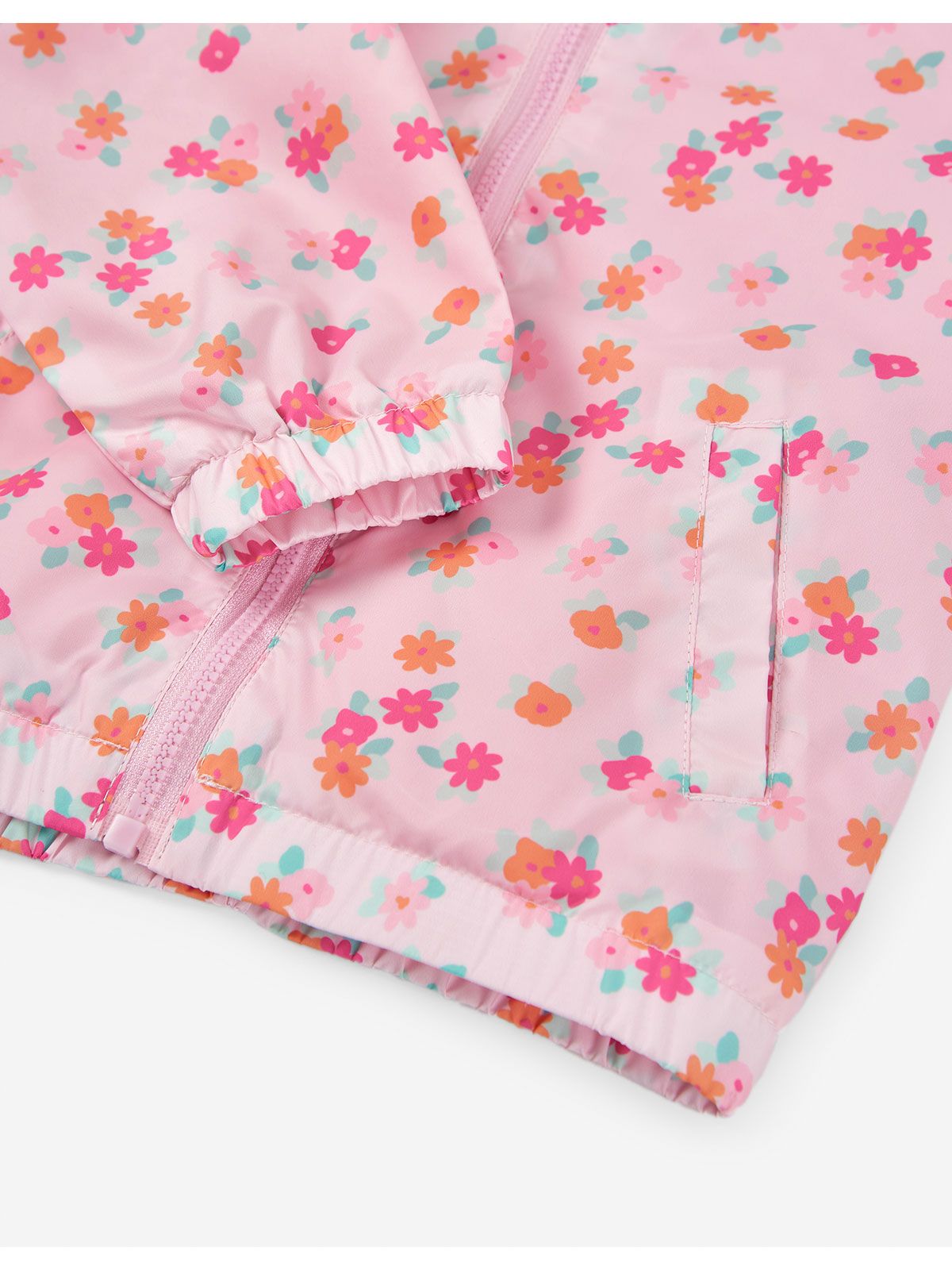 Πανωφόρι αντιανεμικό με βαμβακερή επένδυση, τσέπες και κουκούλα με φλοράλ print ροζ