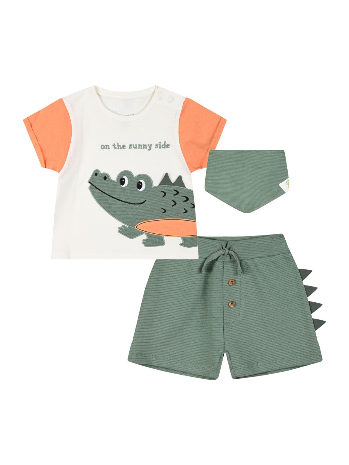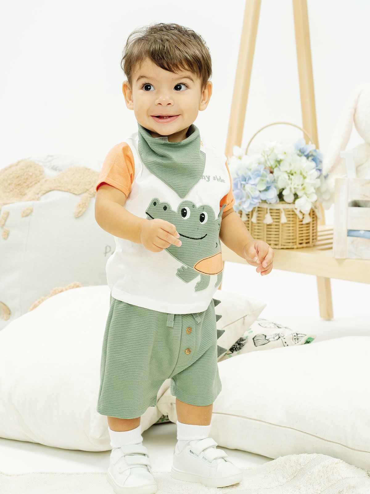 Σετ με print κροκόδειλος και σαλιάρα χακί