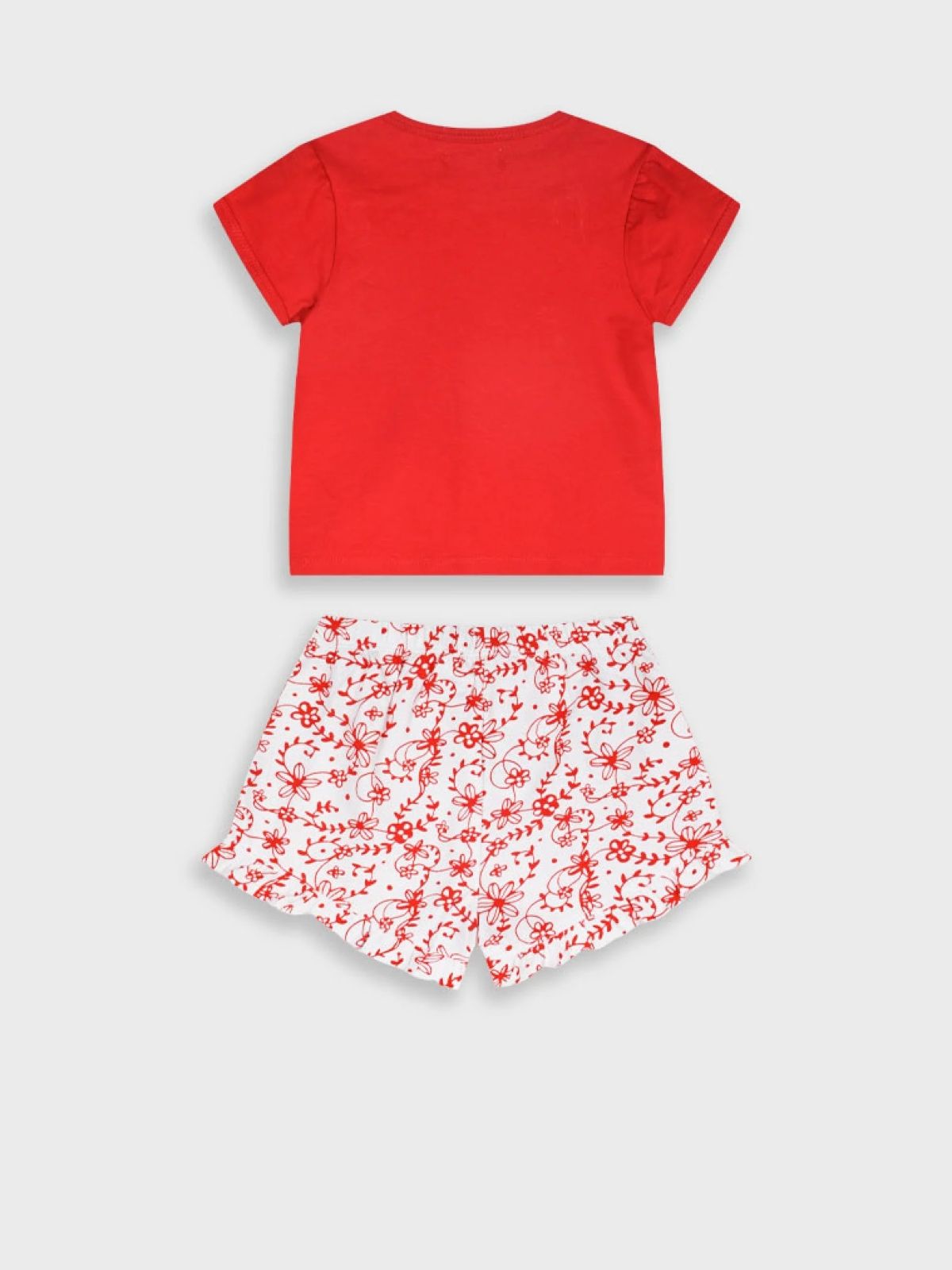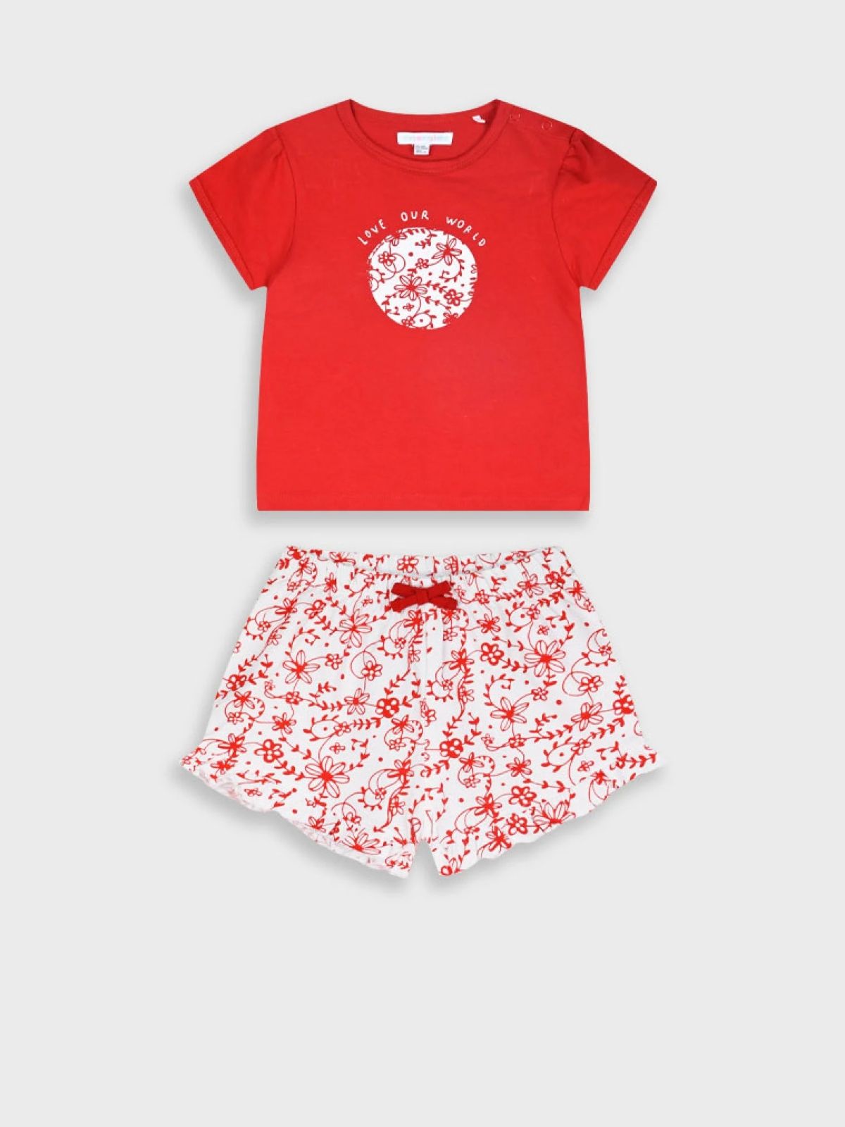 Σετ κοντομάνικη μπλούζα με φλοράλ σορτς και print 'love our world' κόκκινο