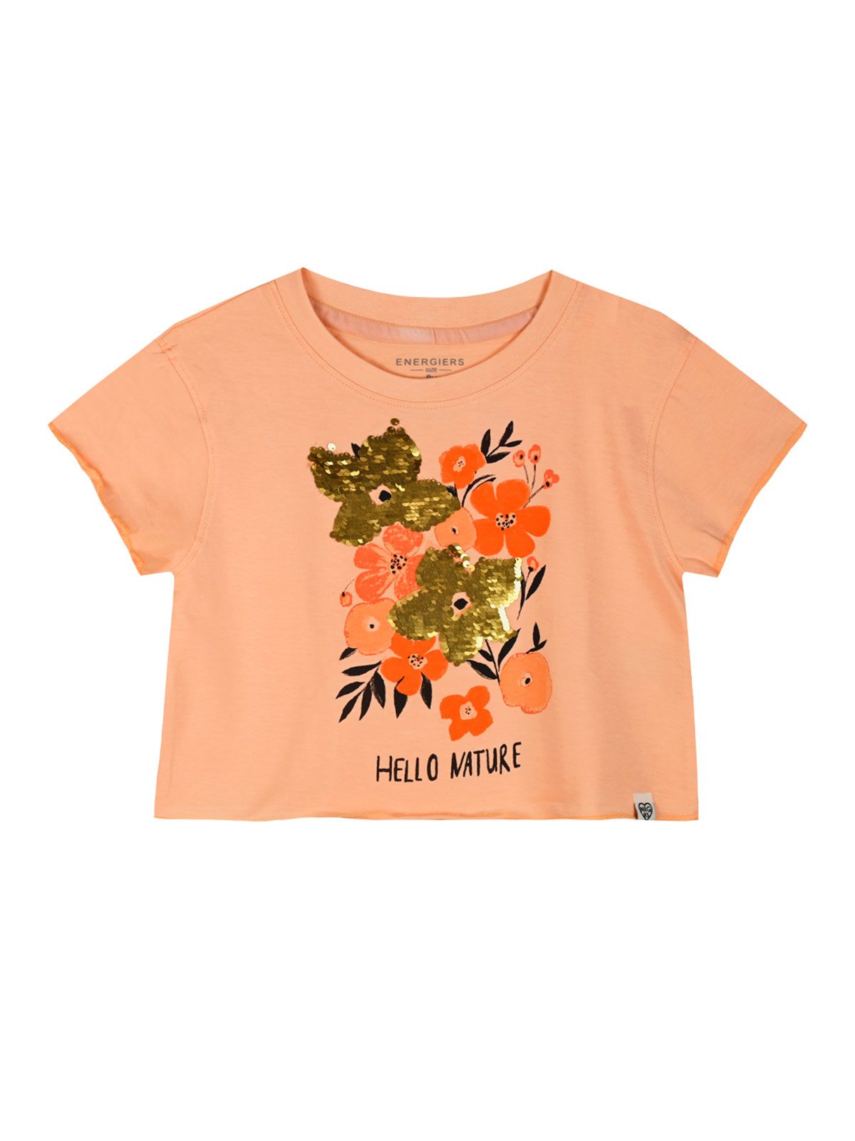 Μπλούζα κροπ φαρδιά με λουλούδια παγέτα peach