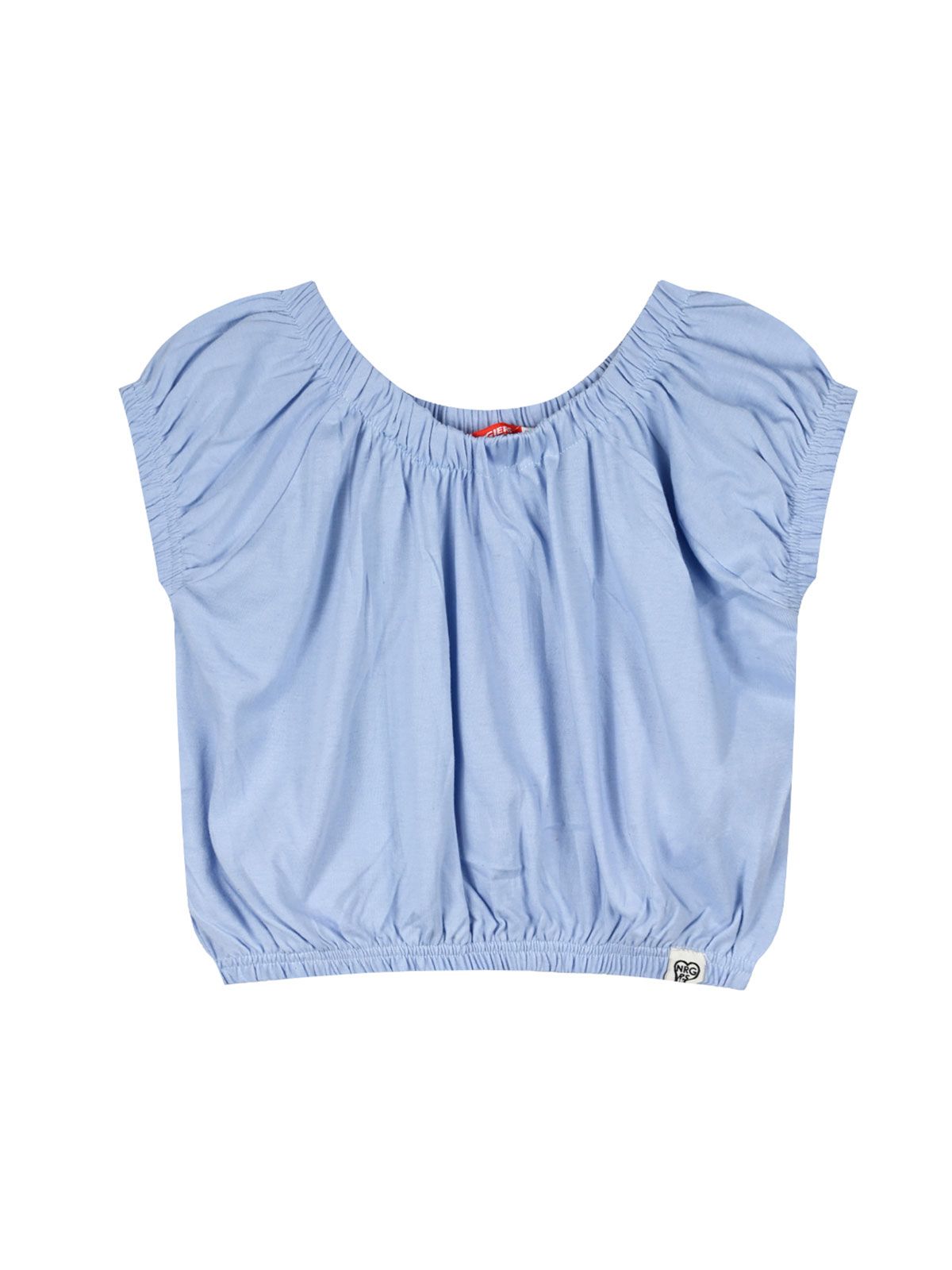 Crop top μονόχρωμο με λάστιχο στο τελείωμα γαλάζιο
