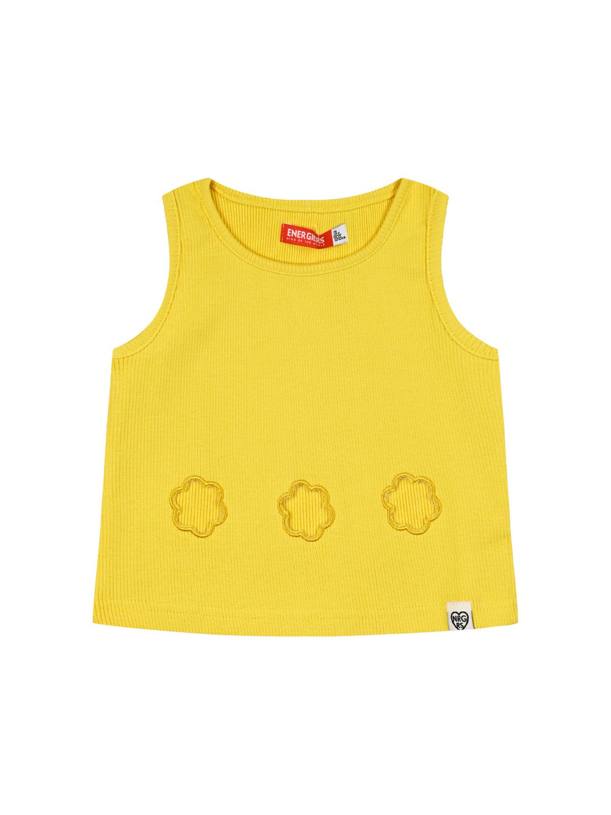 Κροπ τοπ μονόχρωμο με ανοίγματα σε σχήμα λουλουδάκι κίτρινο