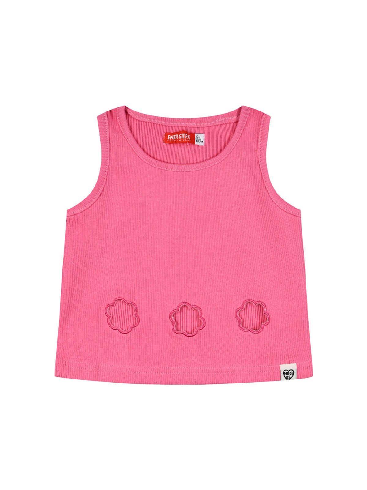 Κροπ τοπ μονόχρωμο με ανοίγματα σε σχήμα λουλουδάκι ροζ