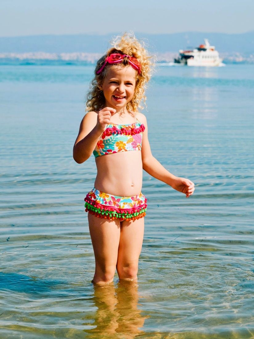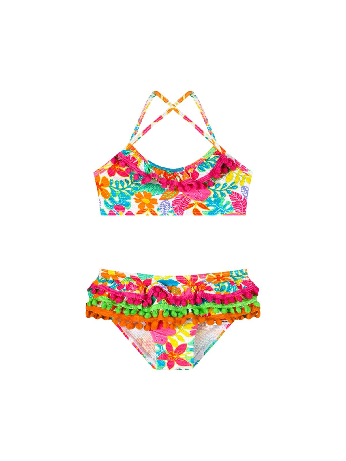 Μαγιό μπικίνι φλοράλ με βολάν φούξια